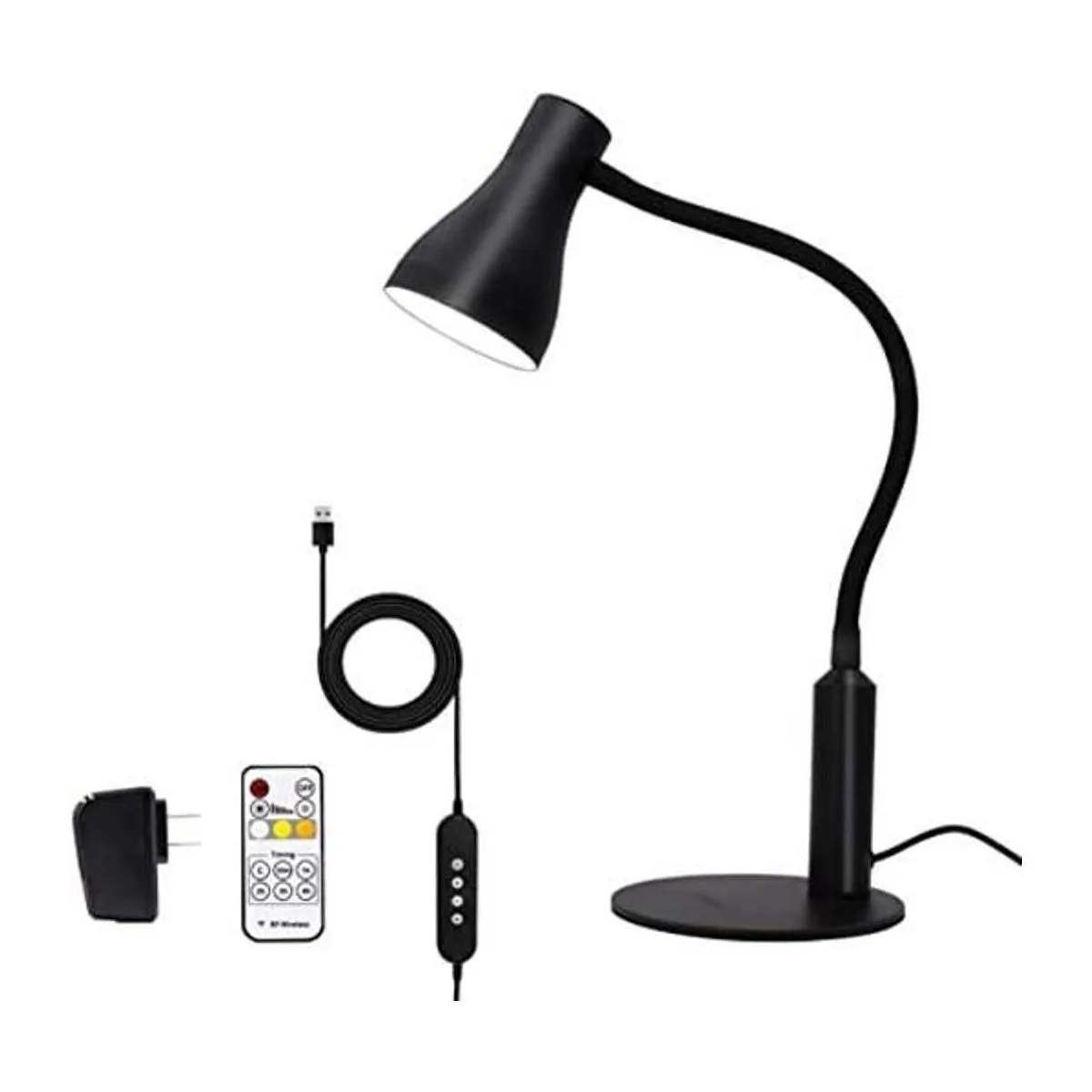 Control remoto RF con función de temporizador y cable USB de 6.6 ft. Estas lámparas de mesa clásicas y modernas tienen control remoto por radiofrecuencia, es muy conveniente para controlar la luz de escritorio desde cualquier ángulo a una distancia lejana. La función de temporizador puede apagar la luz según tu ajuste de tiempo. También tiene un cable USB de 6.6 ft adaptador de CA listado UL incluido y un cuello de cisne flexible para orientar el haz de luz exactamente donde es necesario.
