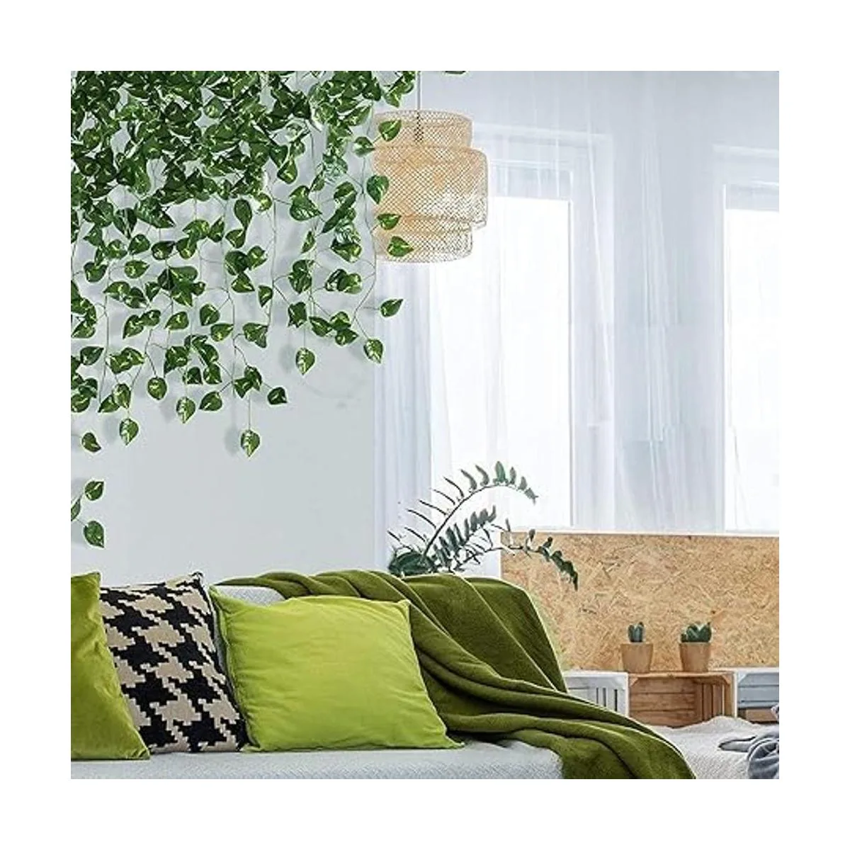 Tamaño de las vides falsas: el paquete incluye 24 vides de hiedra falsas con una longitud total de 173.2 ft. Cada vid mide aproximadamente 7.2 ft de largo.