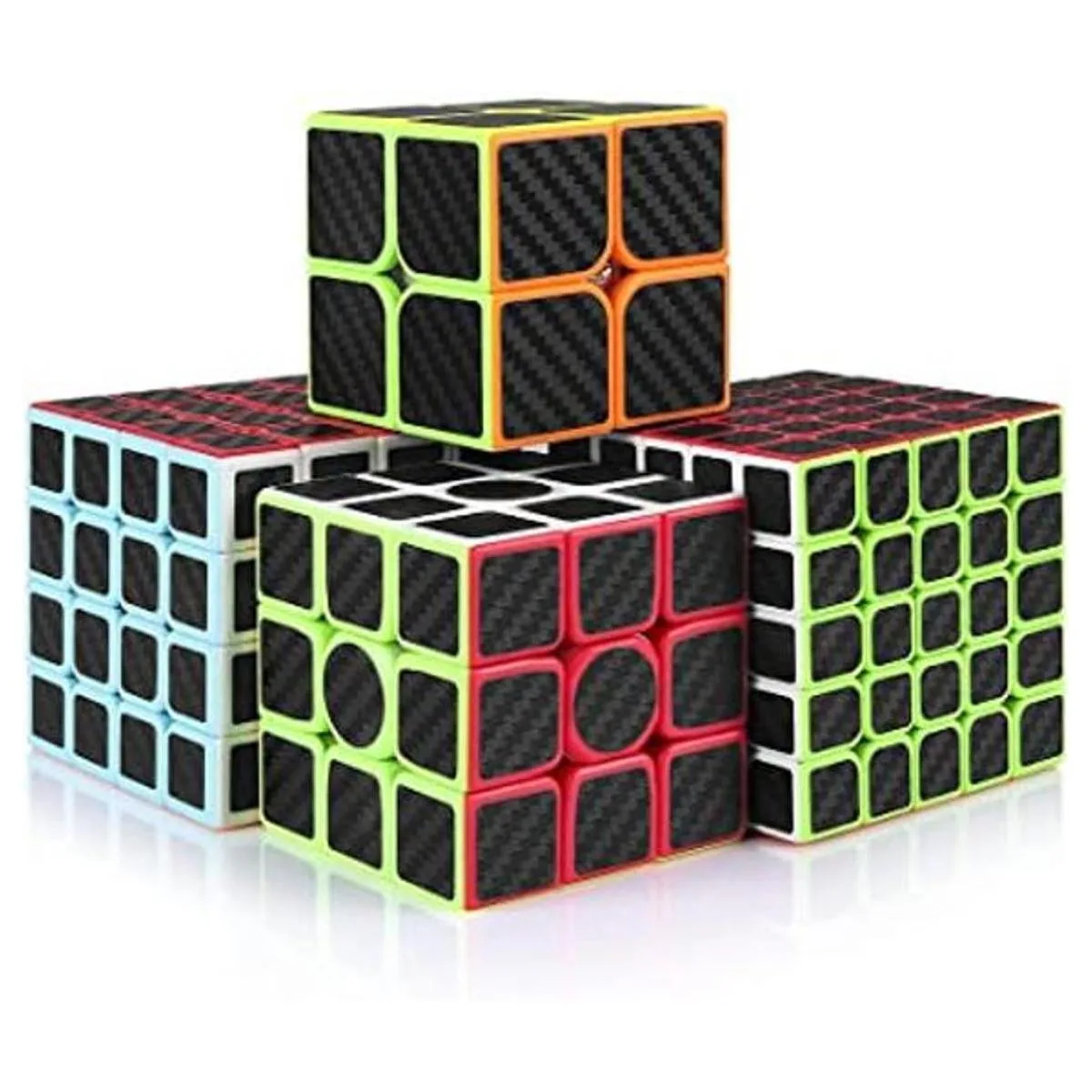 CFMOUR Juego de cubos de velocidad, 2×2, 3×3, 4×4, 5×5, paquete de cubos de fibra de carbono para niños, cubo original liso