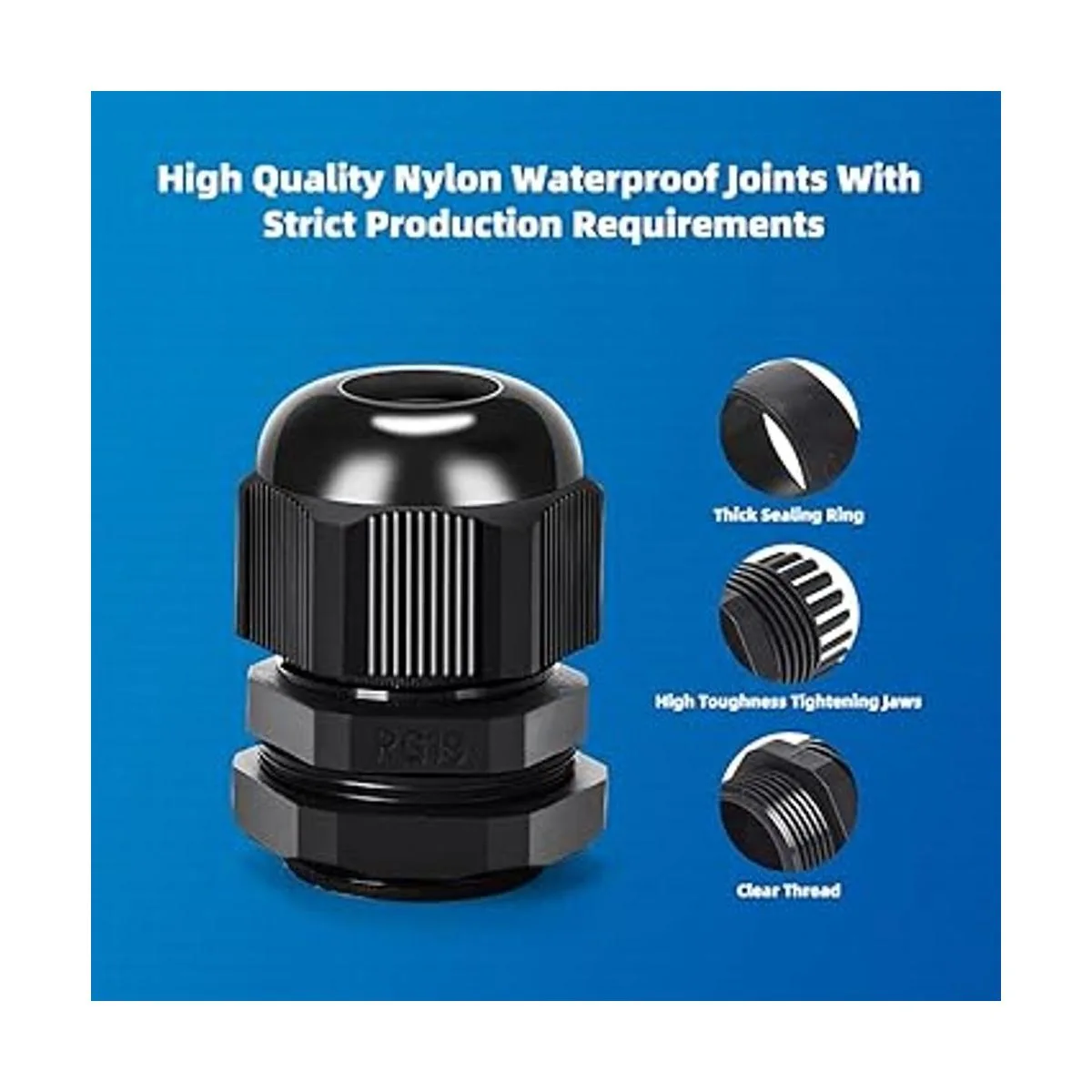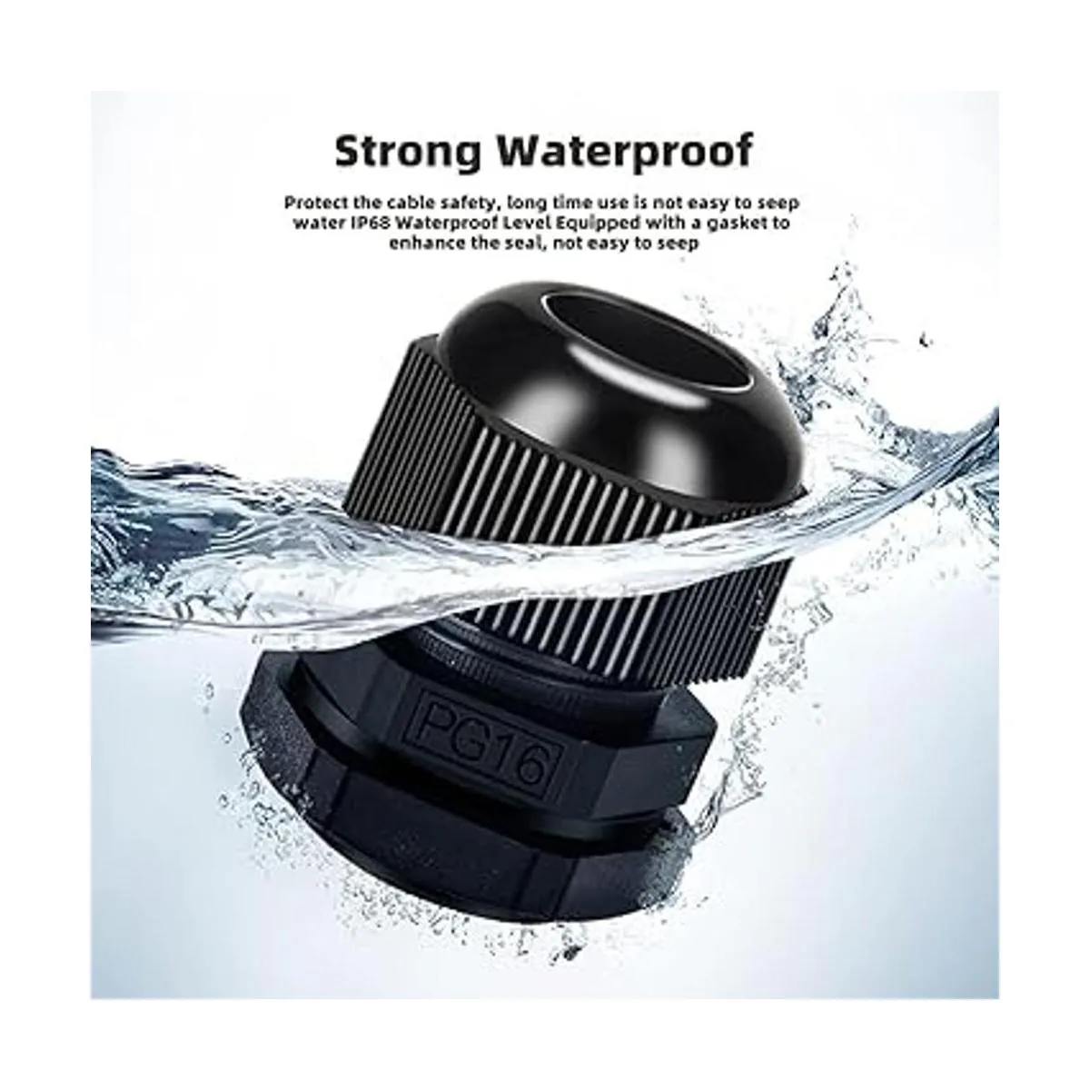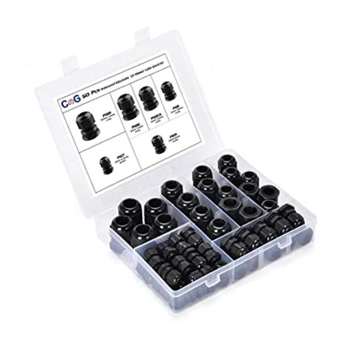 CGELE Paquete de 50 conectores ajustables de plástico impermeables de 0.1180.630 in, conectores de cable de alivio de tensión, juntas de nailon con juntas PG7 PG9 PG11 PG13.5 PG16 PG19