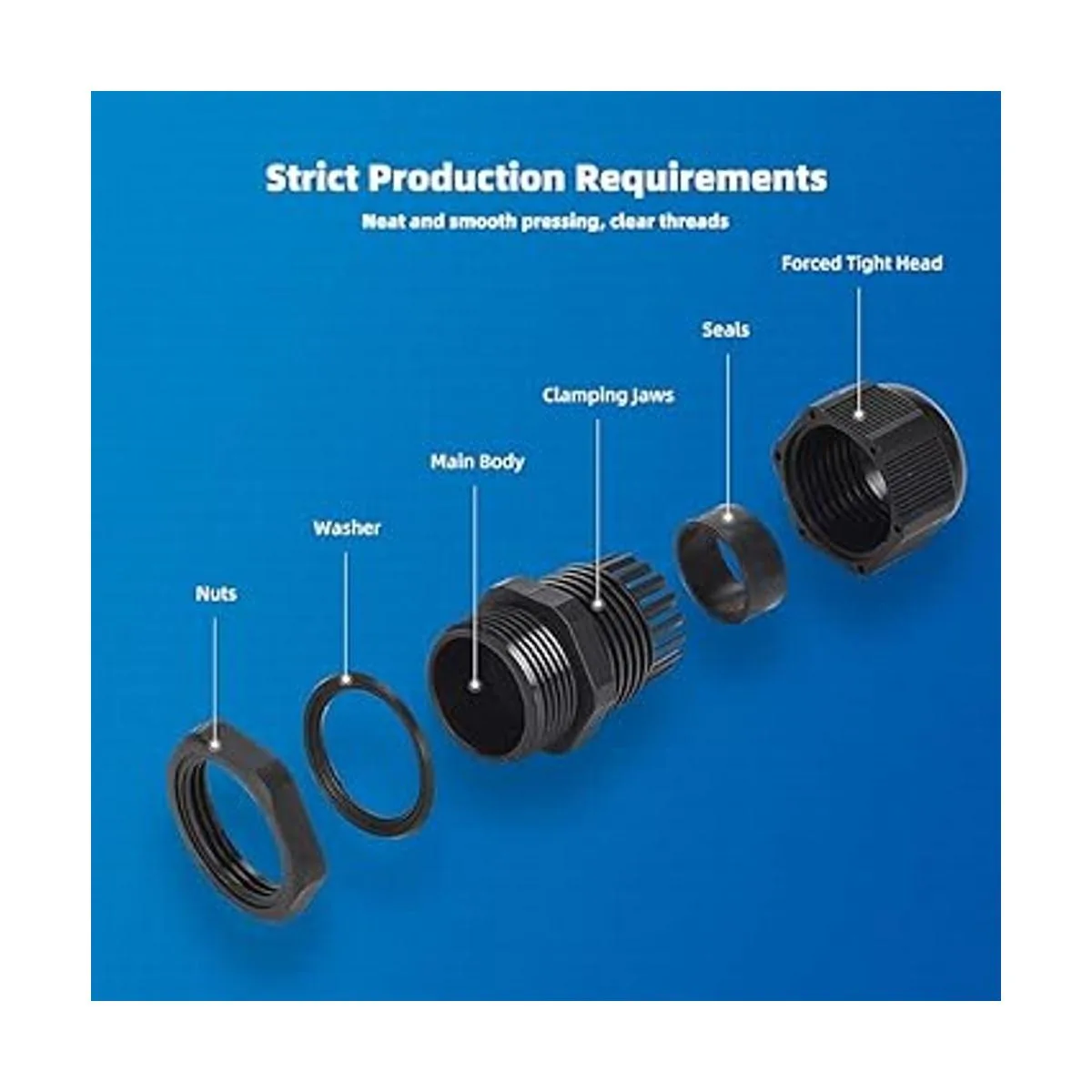 Alta calidad Estos prensaestopas están hechos de plástico PA66 de nailon de alta calidad y son ampliamente utilizados para la fijación de cables, conectores de alambre, cajas de control mecánico, interruptores y aparatos eléctricos, etc.