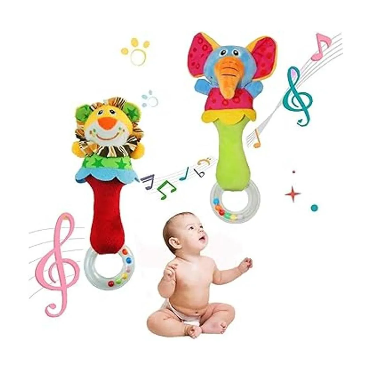 CHAFIN Coctelera de sonajero suave para bebés, juguetes de mano de desarrollo infantil, lindo animal de peluche con sonido para 3, 6, 9, 12 meses y regalo para recién nacidos paquete de 2