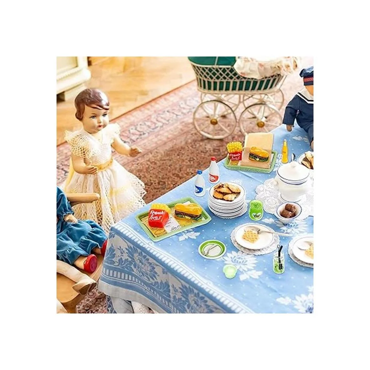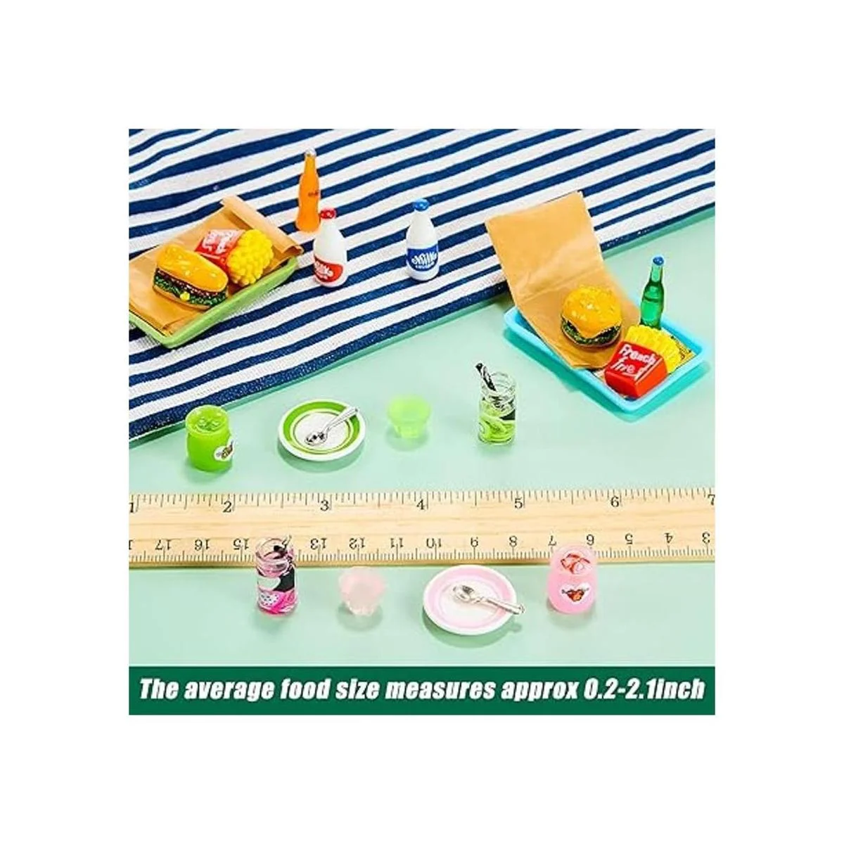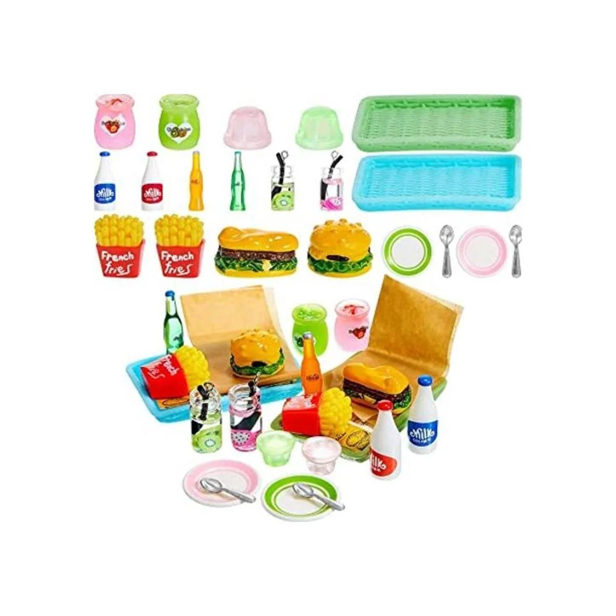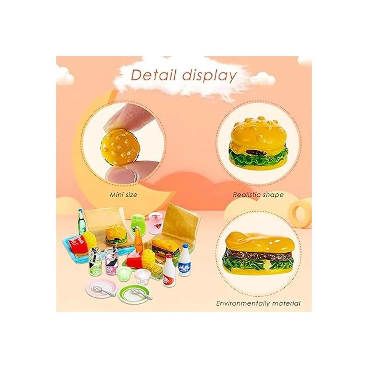 El paquete incluye: recibirás 8 juegos de alimentos en miniatura, incluyendo hamburguesas, perritos calientes, refrescos, juegos de pudín, leche, té de frutas y otros alimentos, bandejas, cucharas, etc. Cantidad suficiente y estilos ricos son suficientes para satisfacer tus necesidades, también te permiten jugar con tus amigos para mejorar la relación