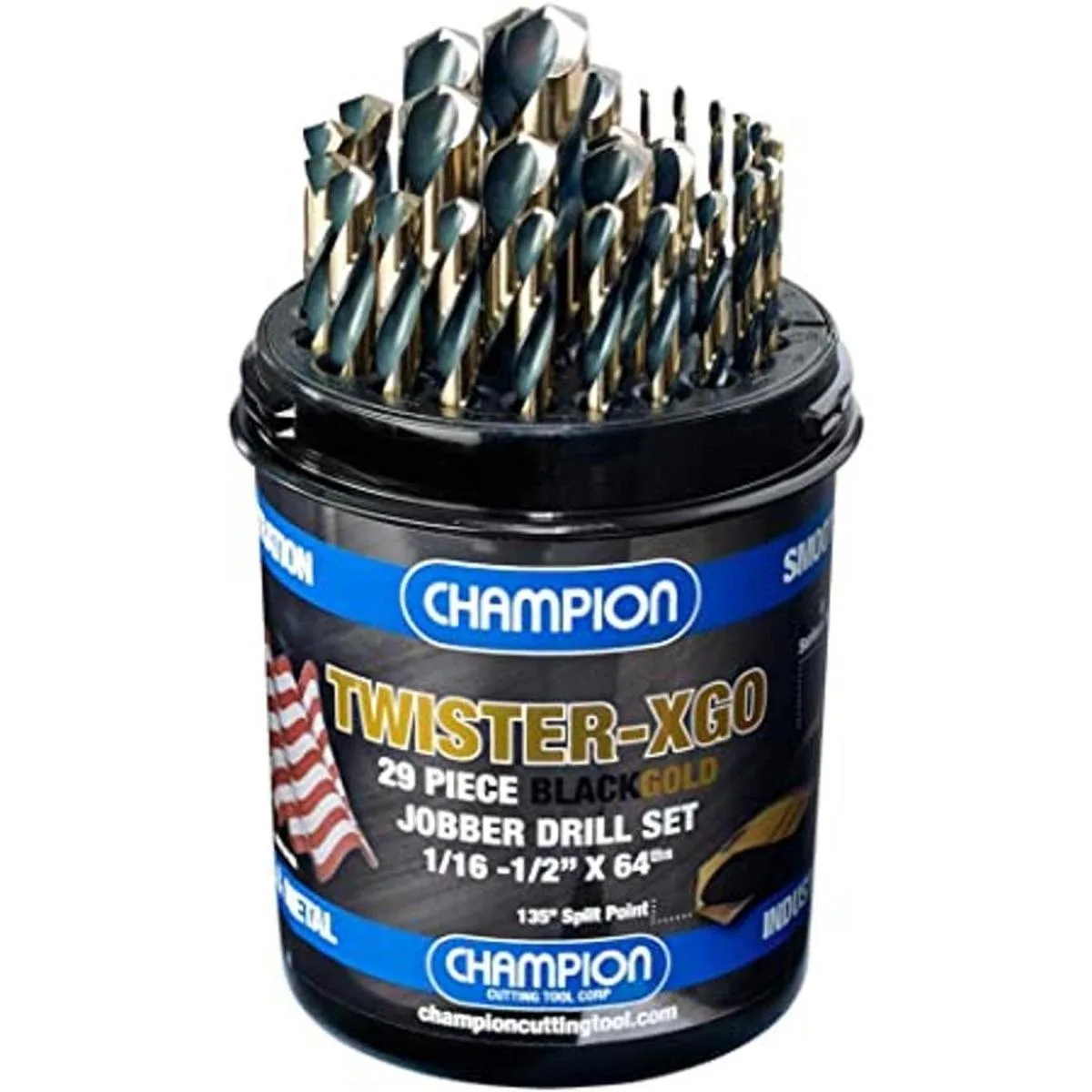 Champion Herramienta de corte Corp TWISTERXGO Champion Herramienta de corte resistente, color negro y dorado, 29 piezas Hecho en Estados Unidos, 135 Pt, 116 12 pulgadas x 64Ths,