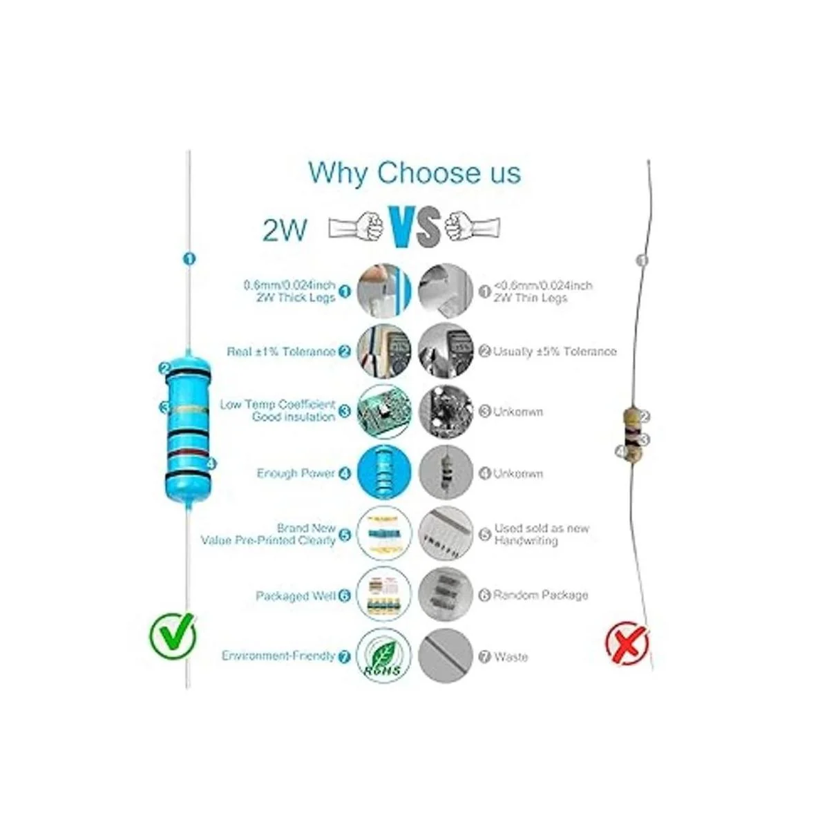 Chanzon 150 unidades de 2 W 1R1MR ohmios 29 valores, kit de resistencia fija de película metálica 1 de tolerancia, 0,01 MF, resistencias de orificio pasante, surtido de limitación de corriente certificado Rohs