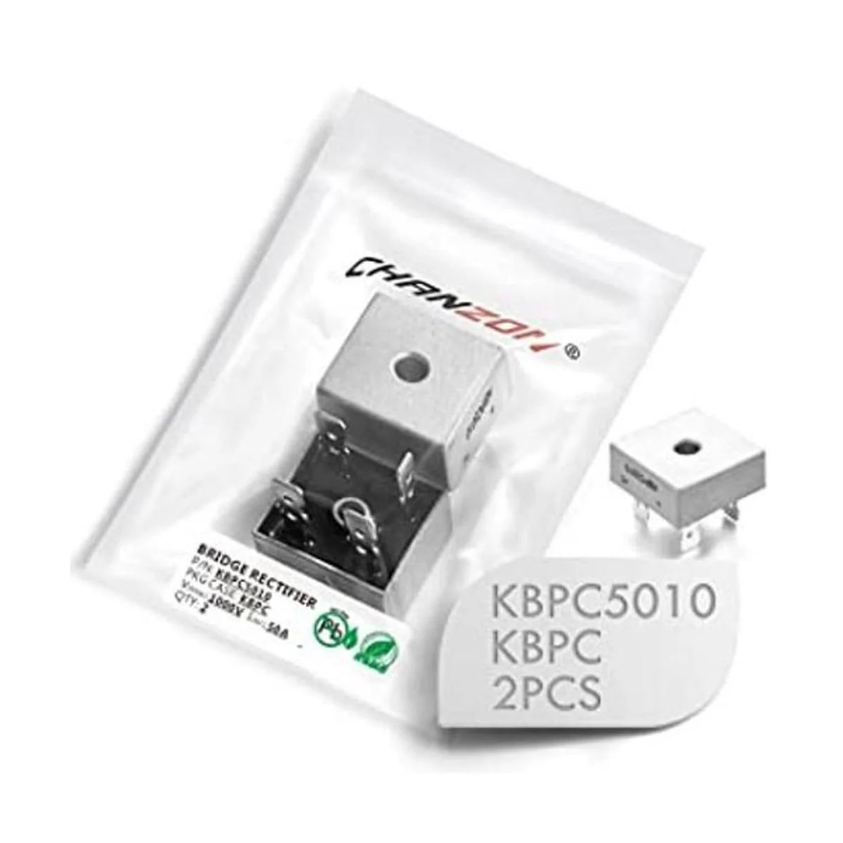 Chanzon KBPC5010 Diodo rectificador de puente 50A 1000V KBPC monofásico, onda completa 50 amperios y 1000 voltios diodos electrónicos de silicona