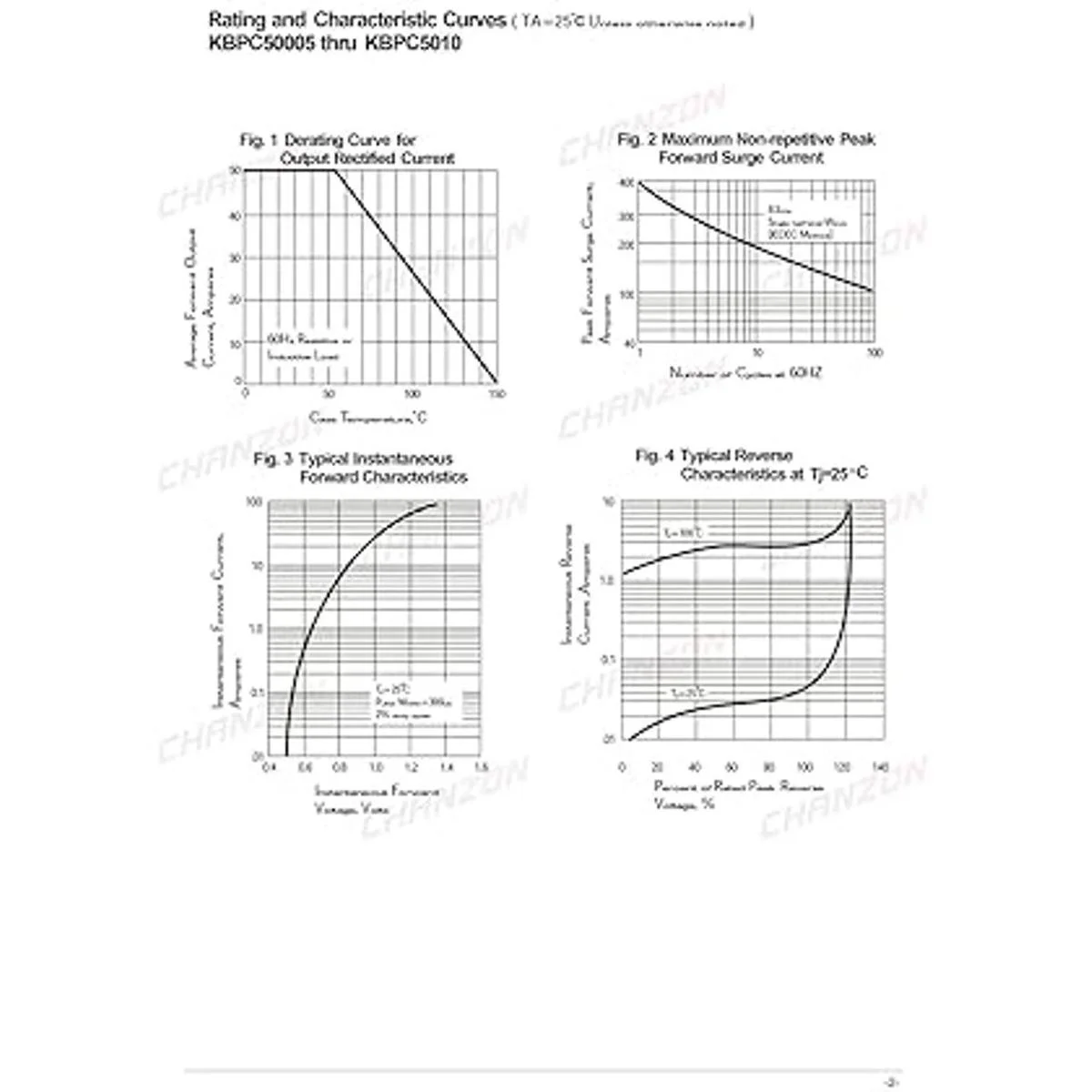 Número de pieza: KBPC 5010 / Corriente de avance 50 A / Máxima repetitiva tensión inversa 1000 V