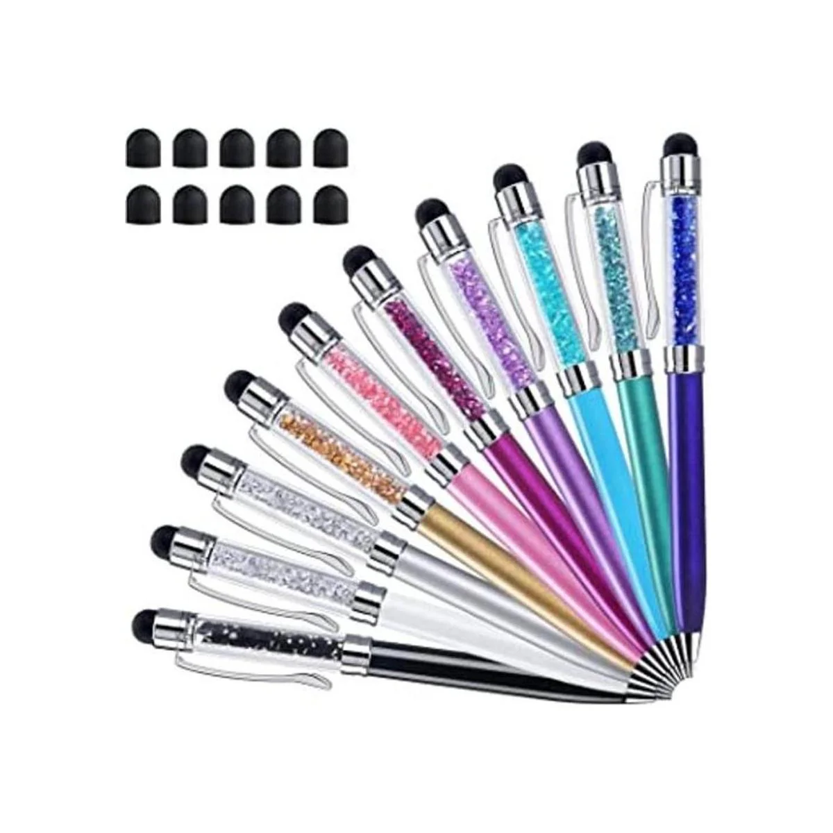 ChaoQ Lápices para pantallas táctiles, bolígrafo 2 en 1 de cristal paquete de 10, punta media de 0.039 in tinta negra, con 10 puntas de goma reemplazables