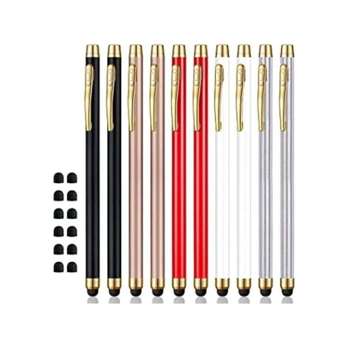 ChaoQ Lápiz capacitivo para pantallas táctiles, 10 unidades, con 12 puntas reemplazables, negro, blanco, plateado, dorado, rojo