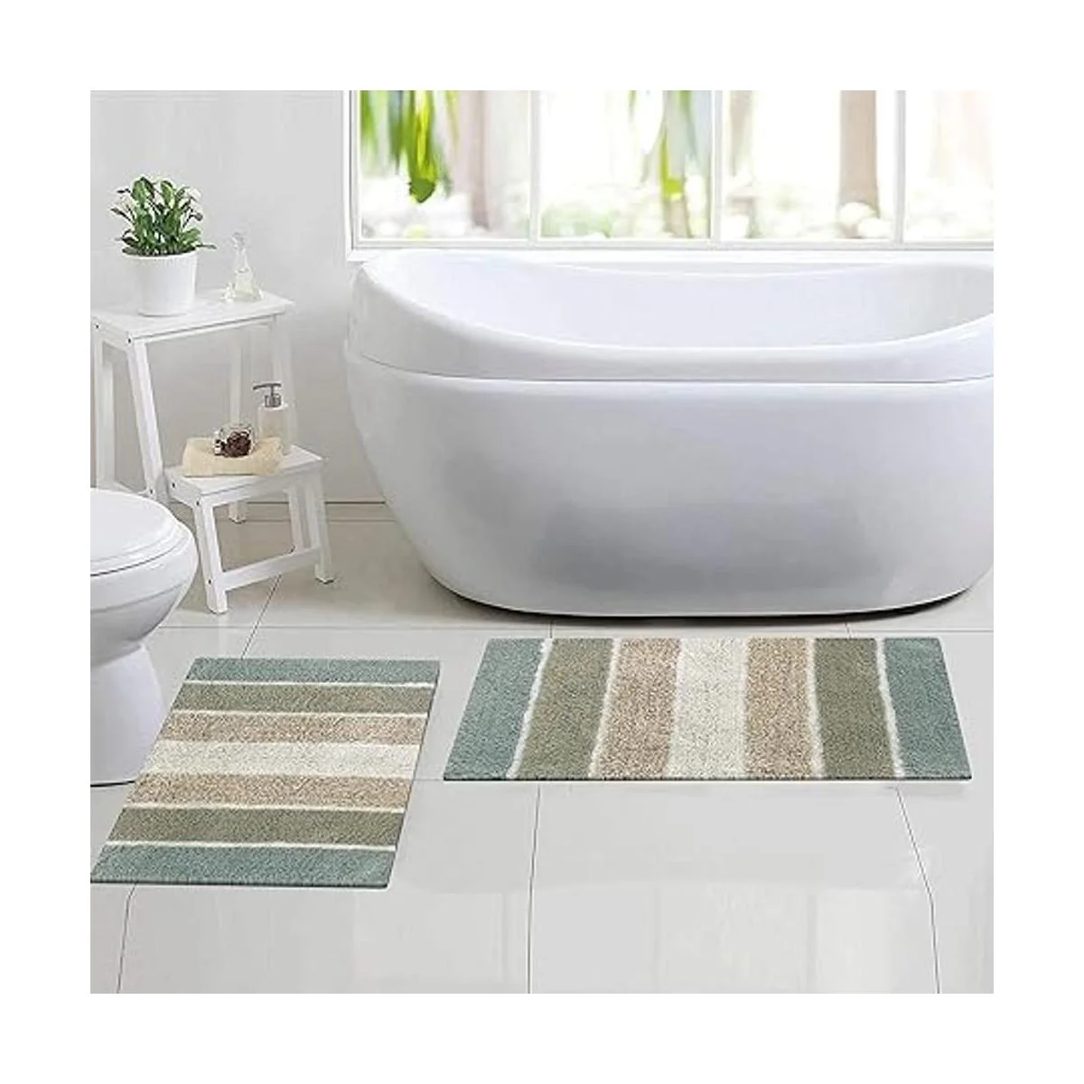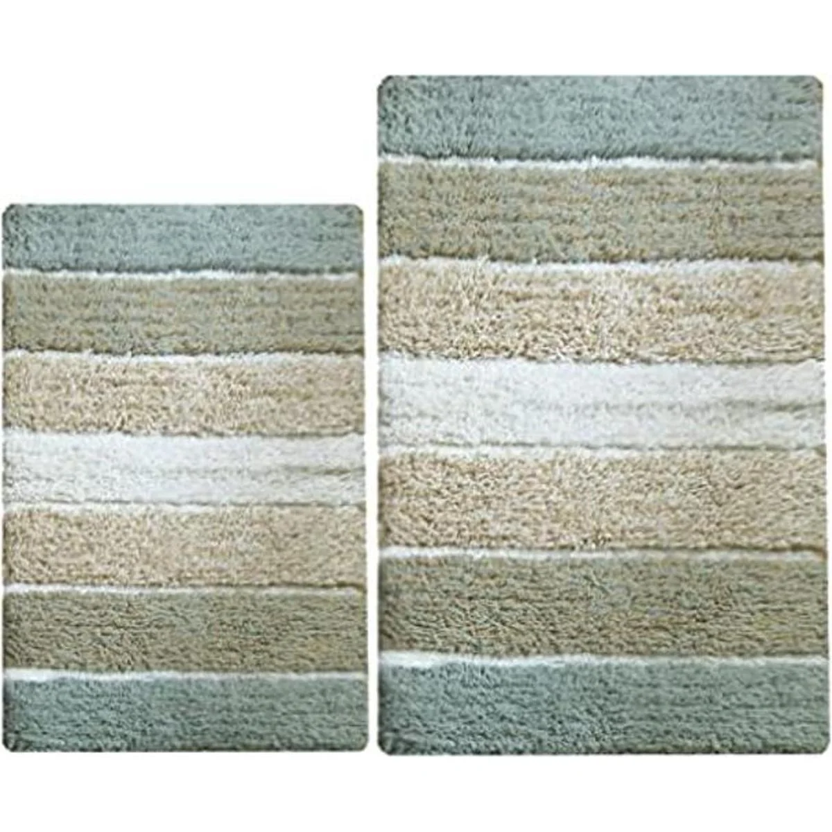100 Cotton Superior highquality yarns. Styled in USA. Our exclusively designed bath rug has cut pile on the surface with spray latex applied on the back to improve skid resistance. These fashion colors create a perfect harmony that will match most towels and bath accessories available in the market. The soft, highly absorbent cotton will feel fluffy and absorbent on your feet