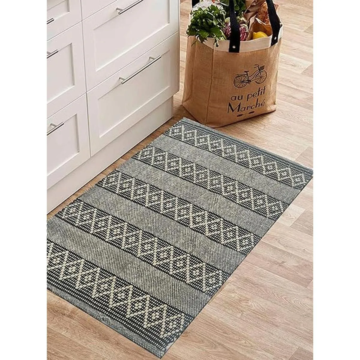 CHARDIN HOME Alfombra bohemia negra y marfil de 2 x 3 pies, alfombra tejida a mano, ideal para cocinas, entradas, baños, meditación, lavable a máquina y reversible