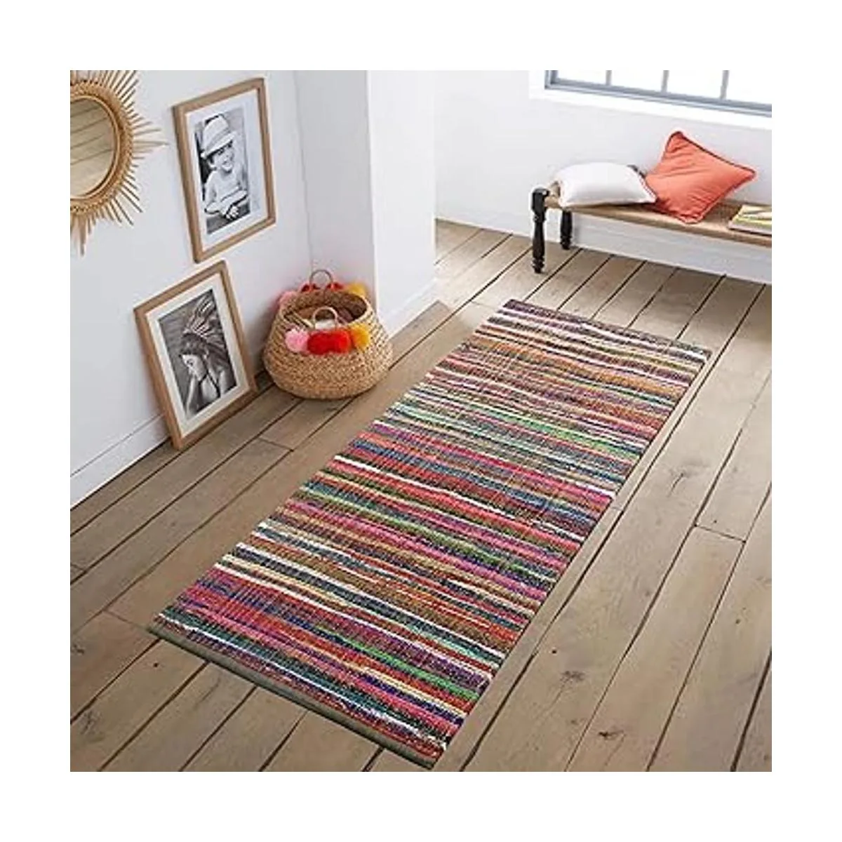 Chardin Home Alfombra chindi colorida de 100 algodón reciclado, ecológica, 2 x 7 pies, multicolor