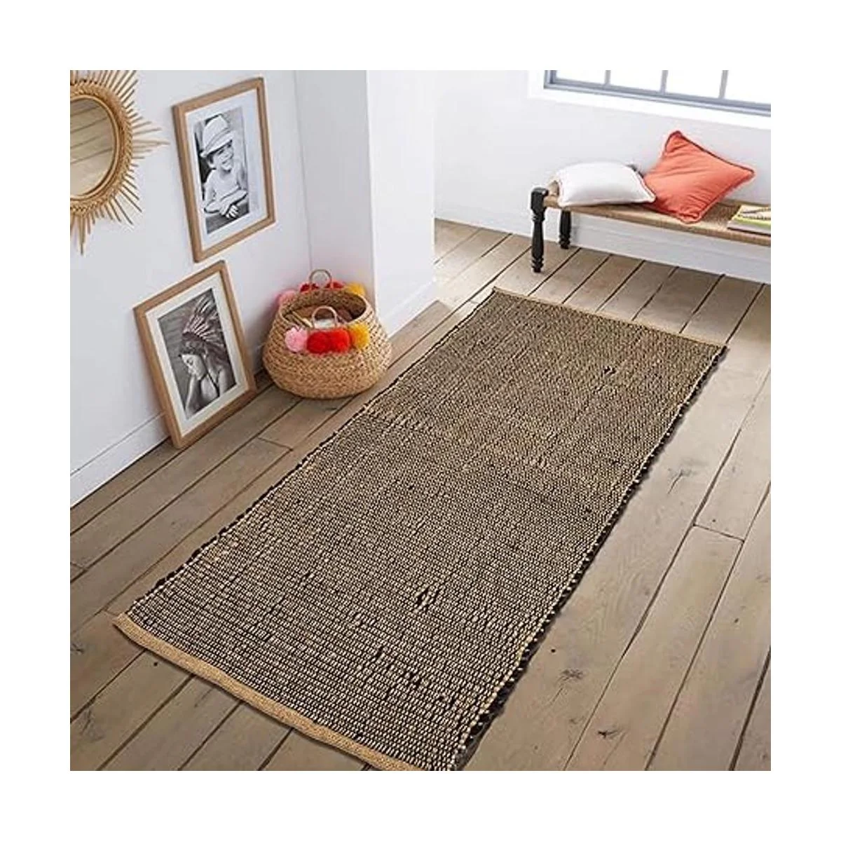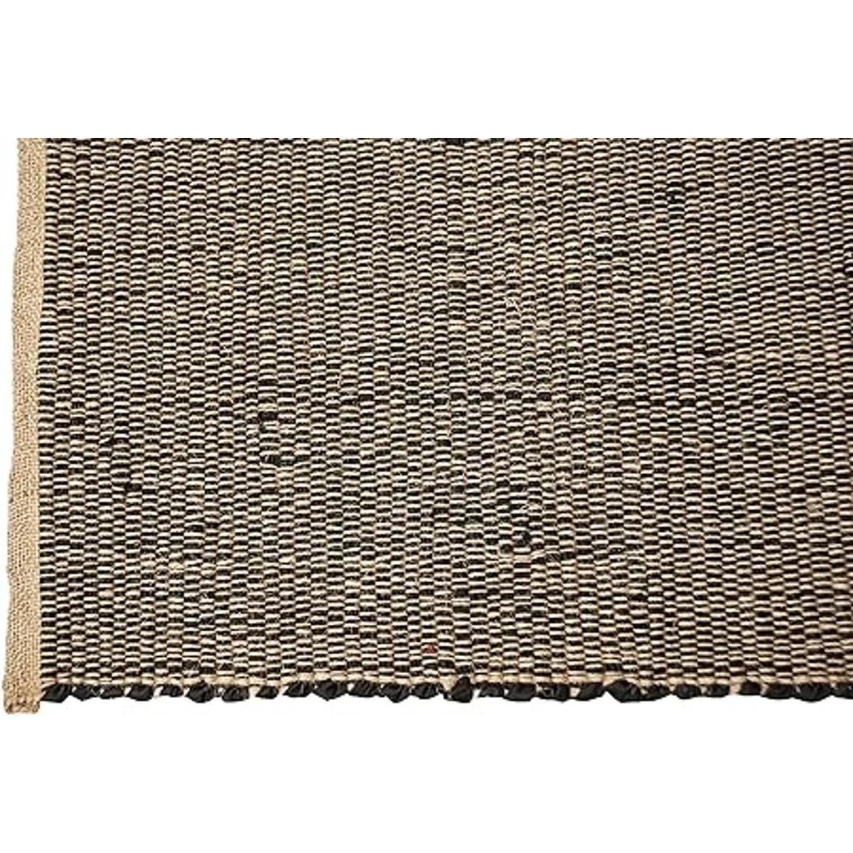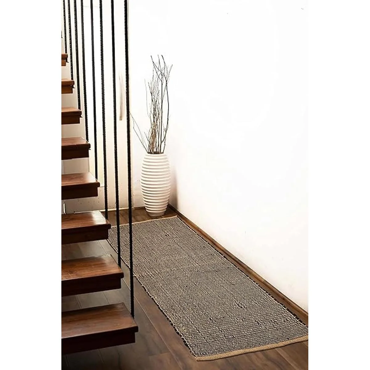 nico: cada alfombra tiene una característica única ya que los cortes de algodón teñido se tejen al azar. Cada alfombra da un bonito aspecto de granja, campo, cabaña. El yute natural hace que parezcan vintage y artesanales.