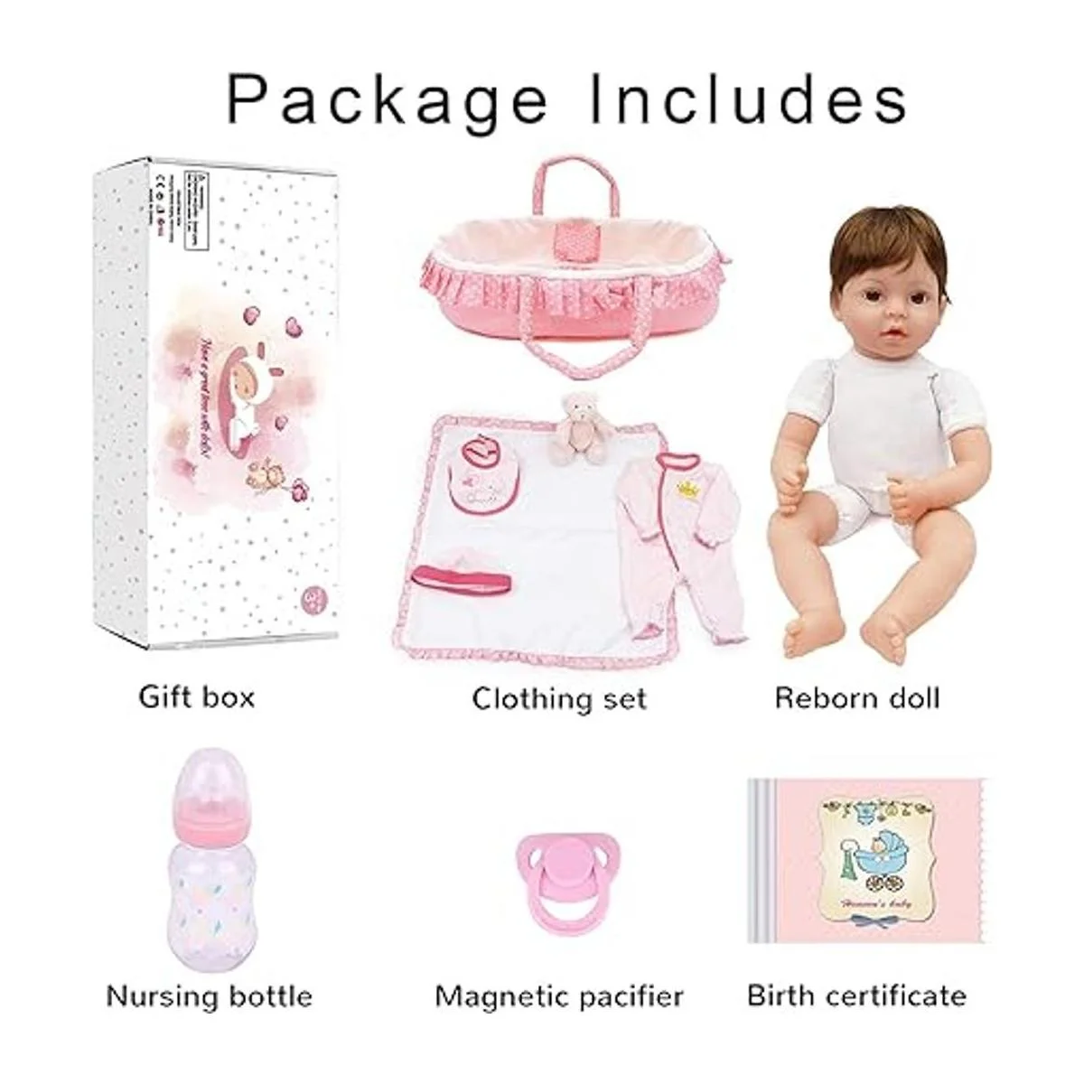 Accesorios: la muñeca realista Reborn viene con un babero, biberón, manta, certificado de nacimiento, chupete magnético y cuna para bebé