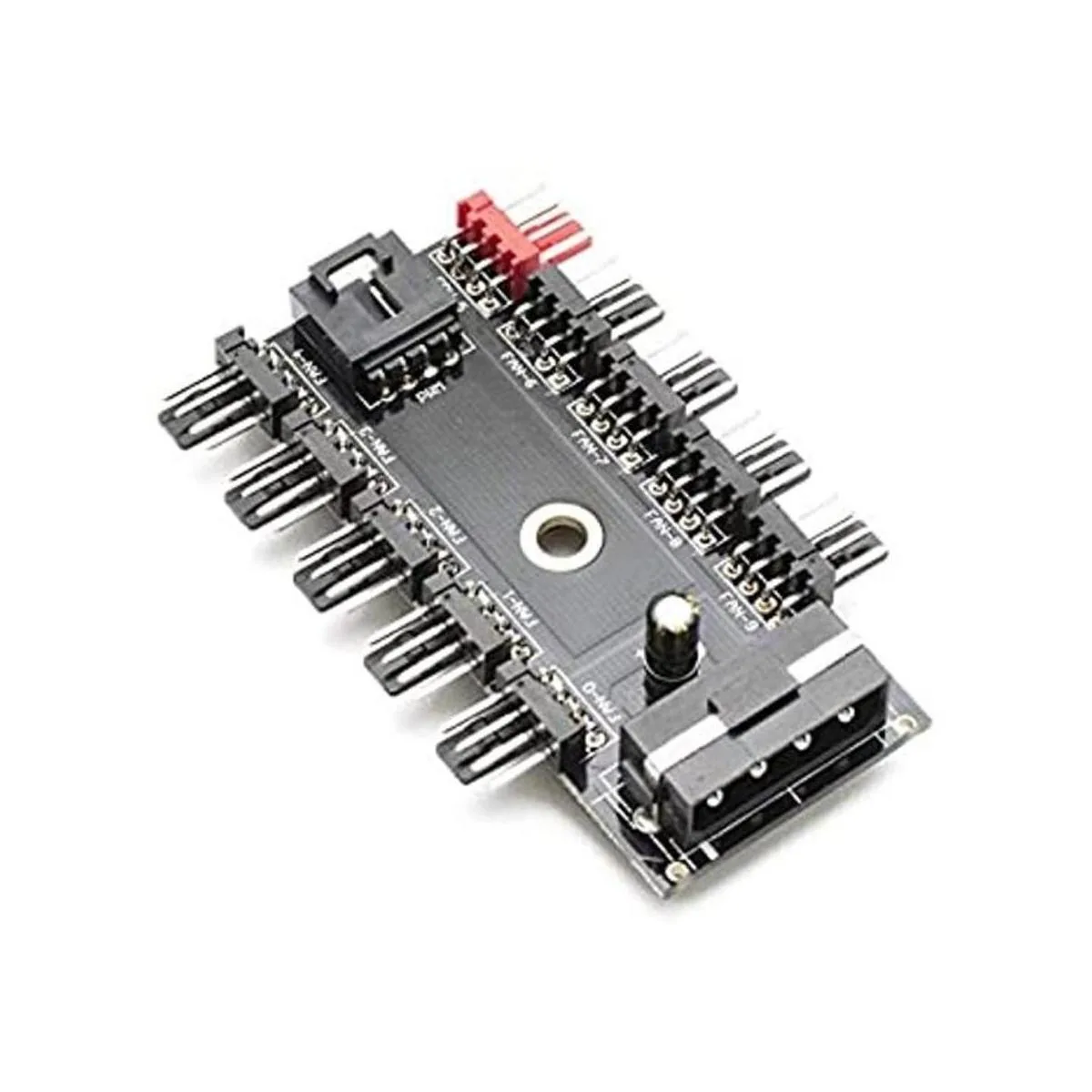 Chassis Fan Hub Refrigeración CPU 10 Puertos 12 V Molex a PWM Conector con 3 y 4 Pines Sistema eficiente de controlador de ventilador de PC con cinta adhesiva Suministro dedicado de PSU a Link Múltiples Puntos
