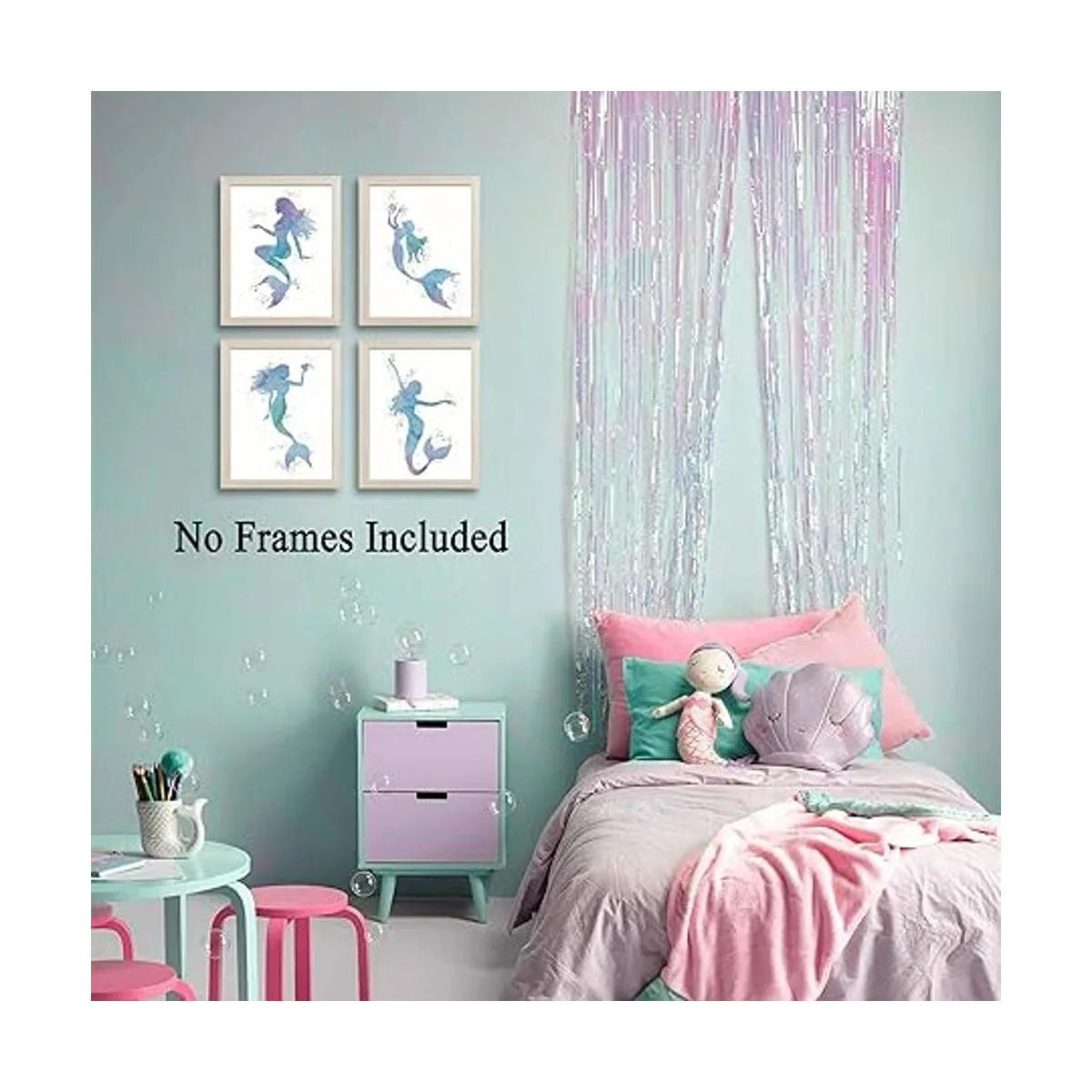 Ventajas de ellos: esta impresión artística de sirena de dibujos animados puede ayudarte a crear fácilmente un ambiente de cuento de hadas en cualquier habitación, para hacer que la habitación de tus hijos esté llena de área divertida e interesante para que tus hijos obtengan más felicidad todos los días.