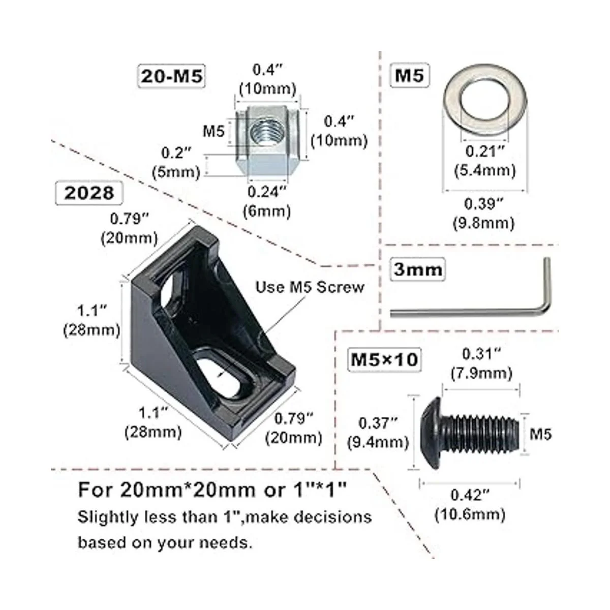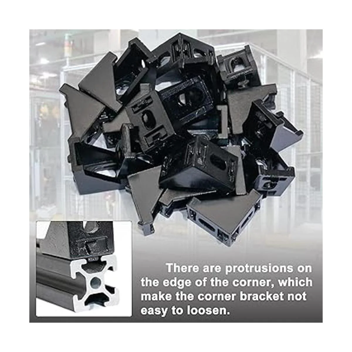 CheeMuii Kit de soporte de esquina 2020, 20 soportes de esquina, 40 tornillos hexagonales, 40 tuercas deslizantes, 40 arandelas y 2 llaves hexagonales para ranura de 0.236 in, 20 s, accesorios de riel de perfil de extrusión de aluminio, 20 juegos