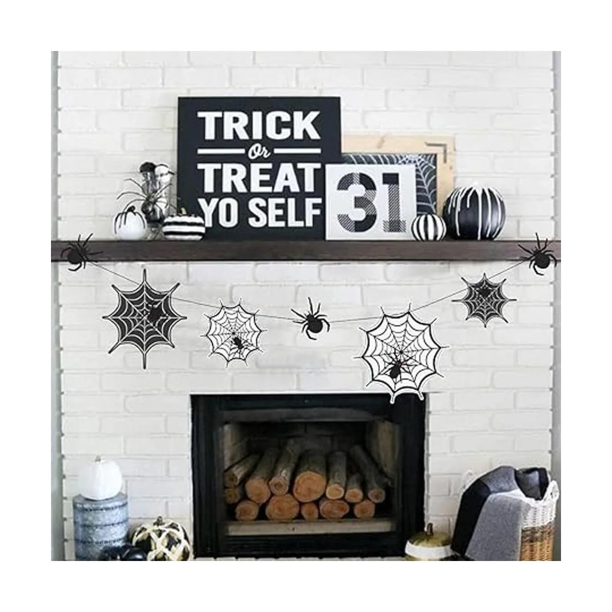 Cheerland Guirnalda de telaraña negra para decoración de fiesta de Halloween, decoración de telaraña, pancarta de telaraña, pancarta de telaraña, decoración de feliz noche de brujas, decoración para cumpleaños, hogar, oficina, aula, suministros de fiesta