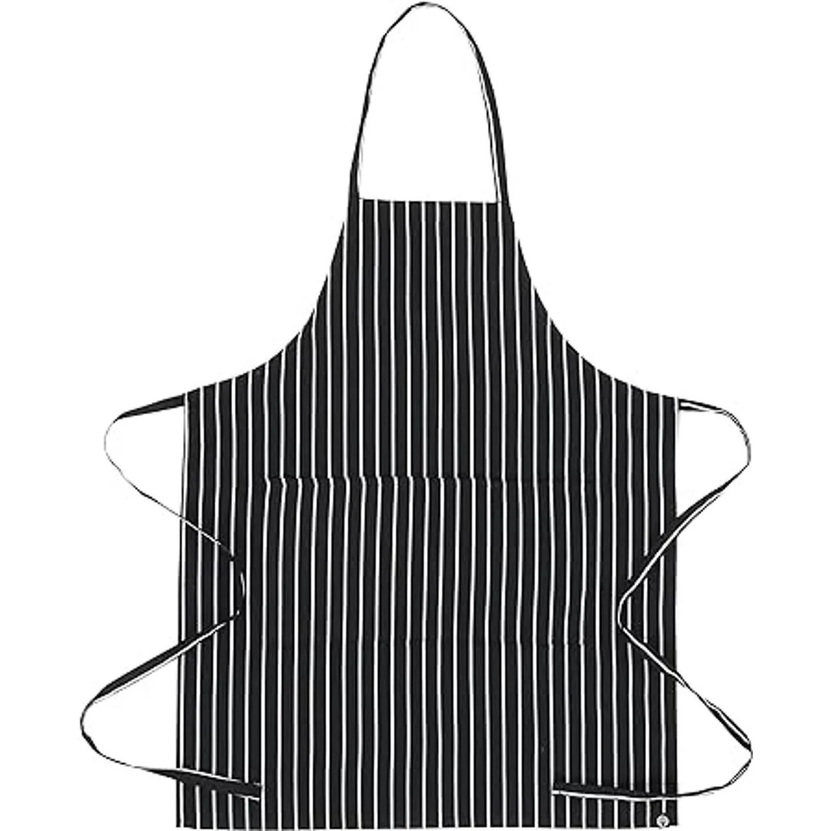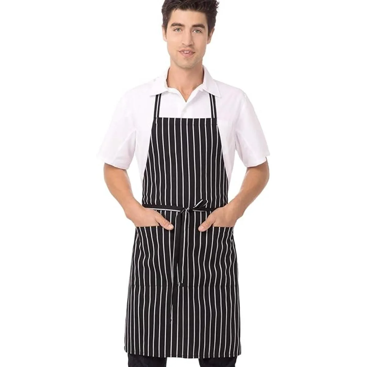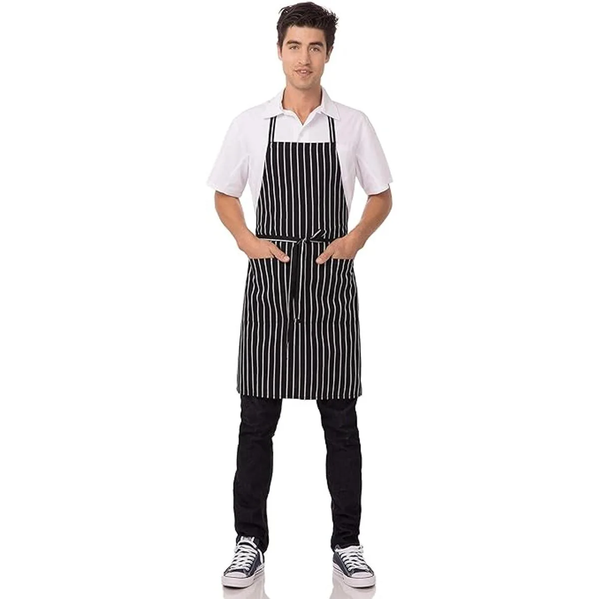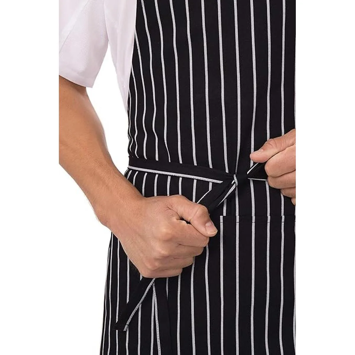 Chef Works Mandil estampado con gis con pechera y bolsillos, 3414 de largo por 27 de ancho, de color blanco y negro