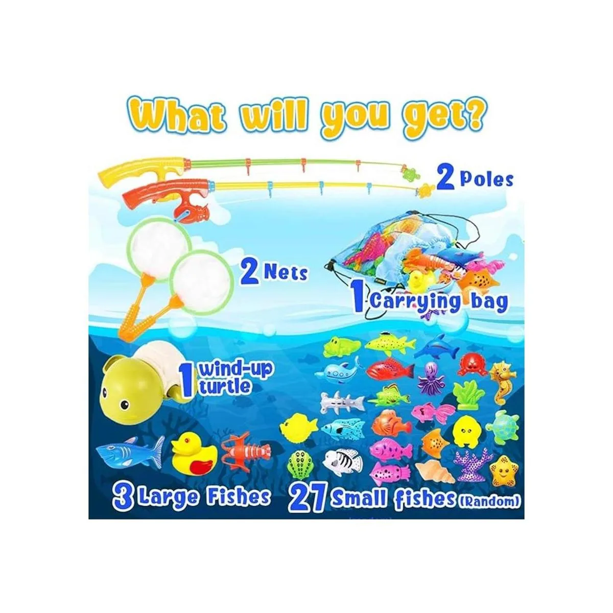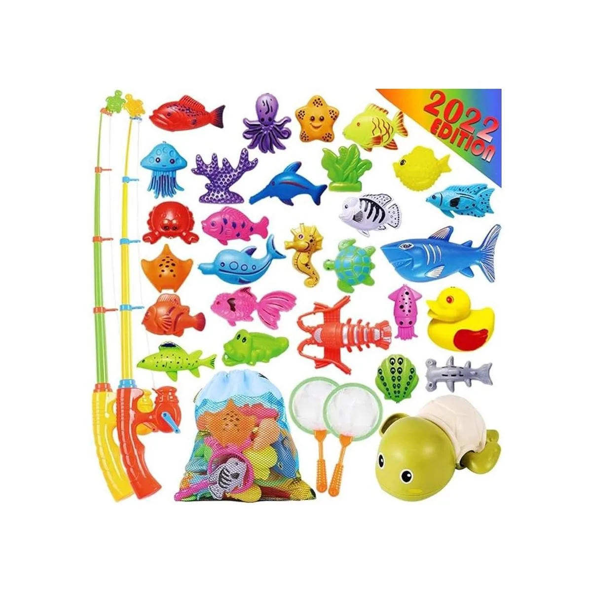 Cheffun Juguetes de piscina de agua de pesca para niños, juego de pesca magnético, juego de pesca, juego de simulación, recursos de aprendizaje, juguete de fiesta infantil, juguetes de animales marinos, juguetes de baño para niños pequeños de 1 a 3 años, 4 a 6 años