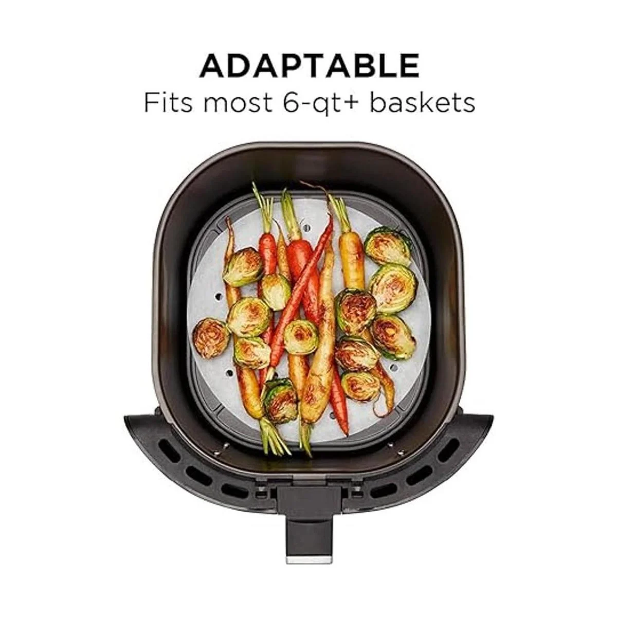 Adaptable: estos forros fáciles de usar se adaptan a la mayoría de freidoras de aire de 6 cuartos de galón. Simplemente prepara tu cesta de freidora de aire con el papel de pergamino y cocina