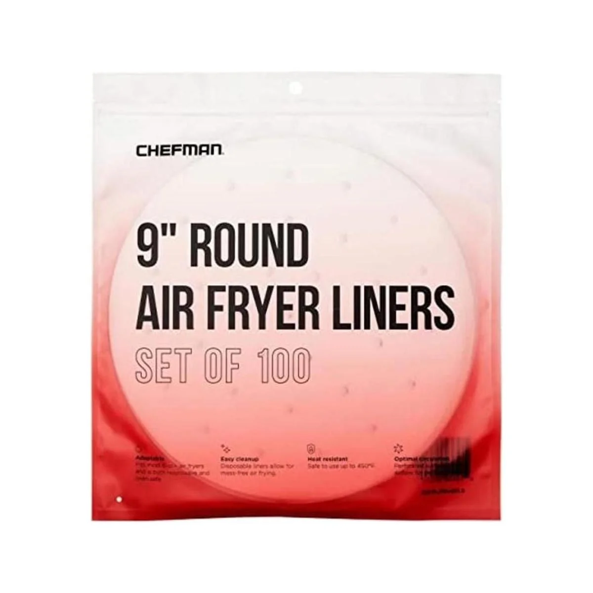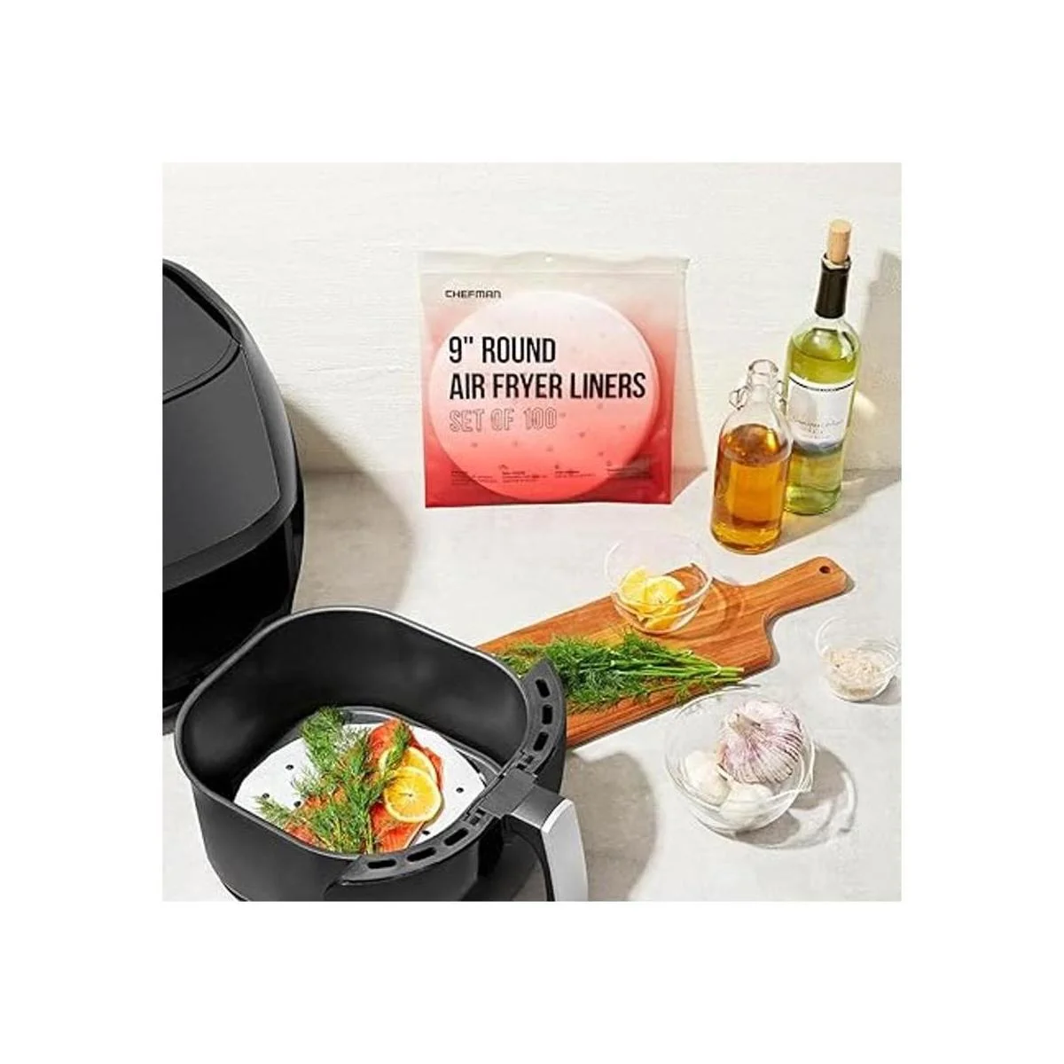 Chefman Forros desechables para freidora de aire, papel pergamino resistente al calor para cestas, paquete de 100 unidades, redondo de 9 pulgadas, forros, paquete de 100 unidades