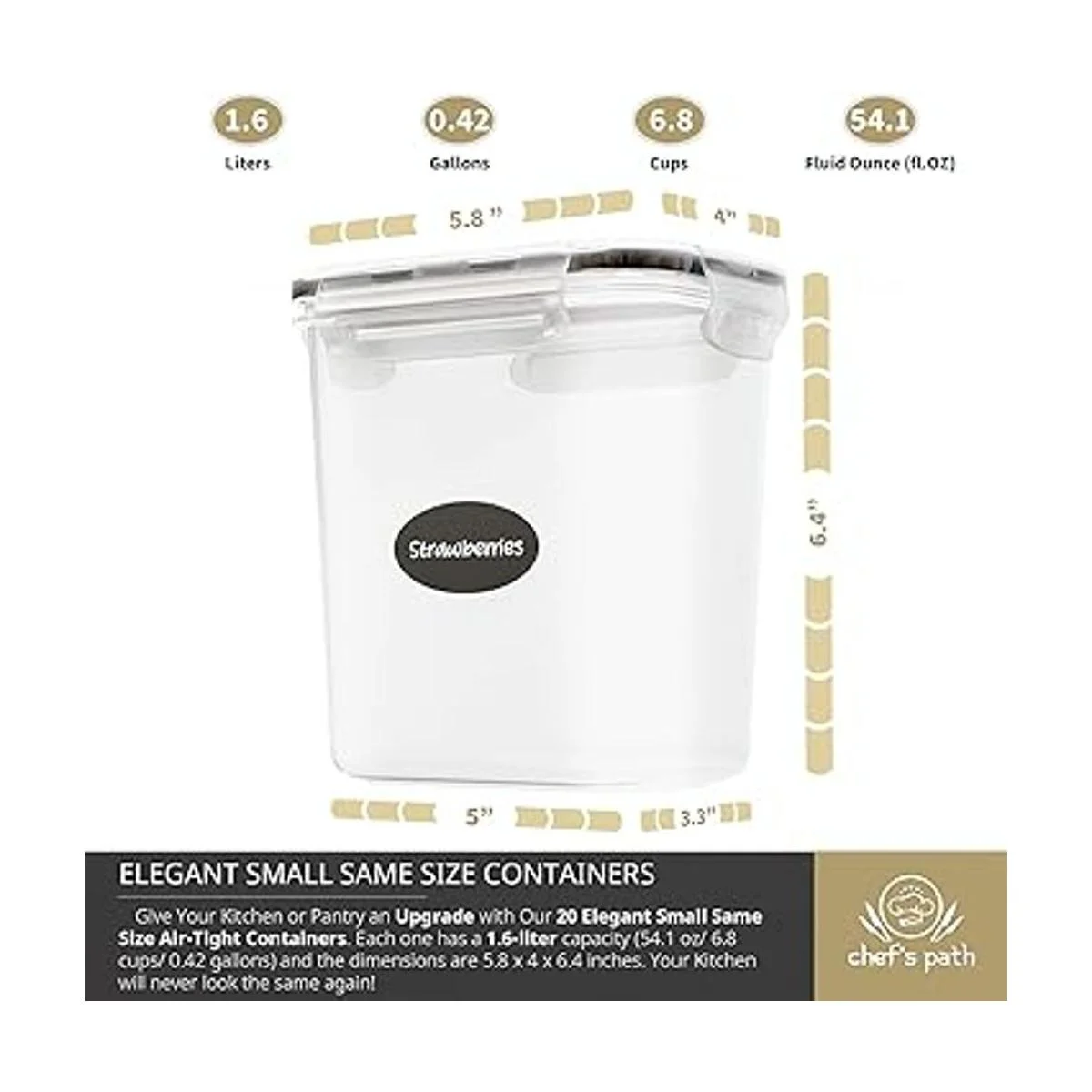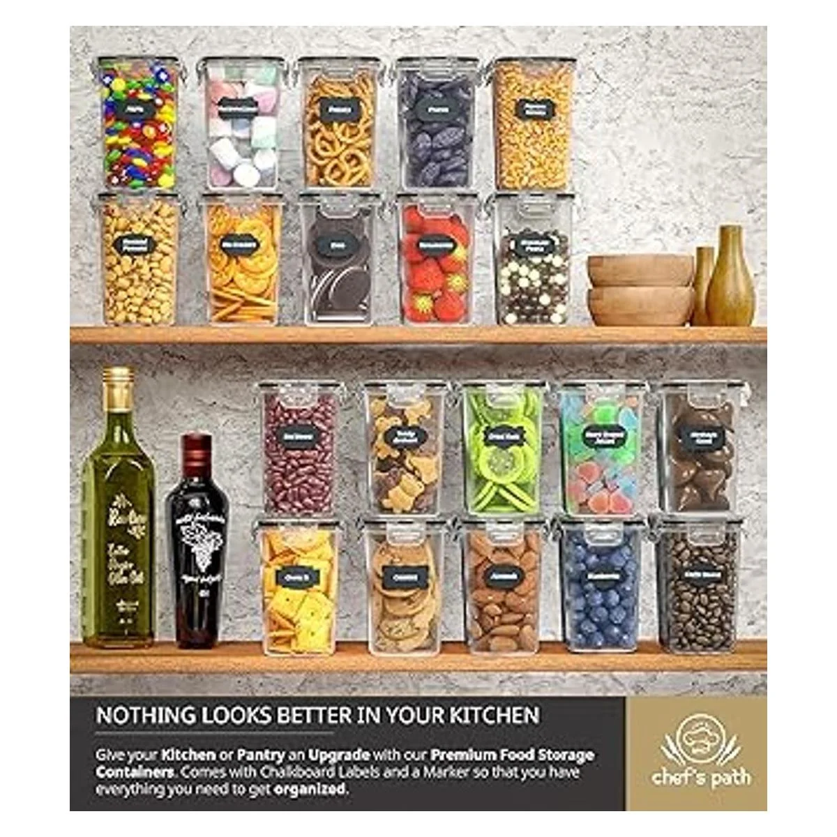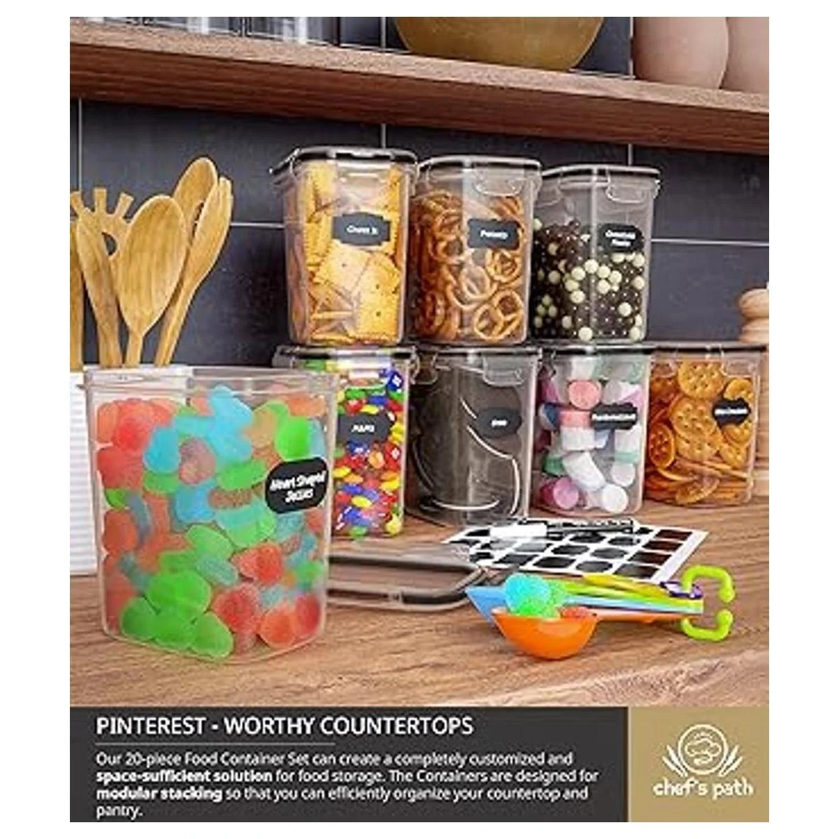 Chefs Path Juego de recipientes herméticos para alimentos 20 unidades, tamaño pequeño, 54 oz, ideales para la organización de cocina y despensa, almacena snacks, harina y azúcar, recipientes de plástico sin BPA, incluye juego de marcador y cuchara