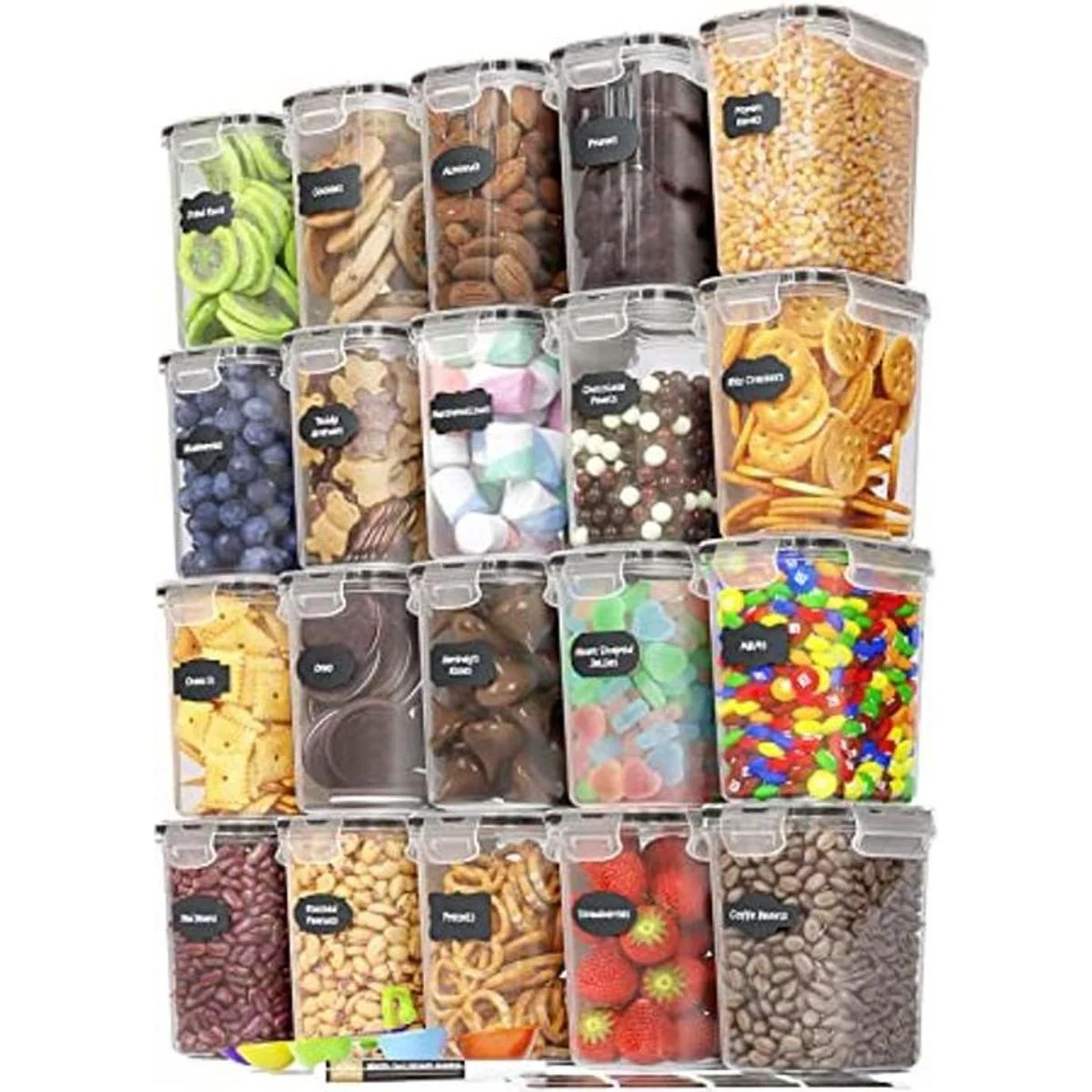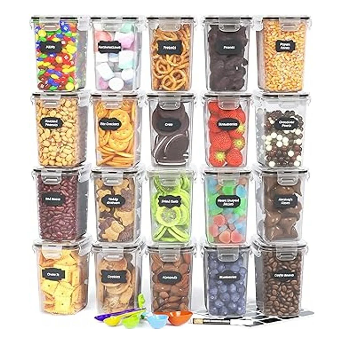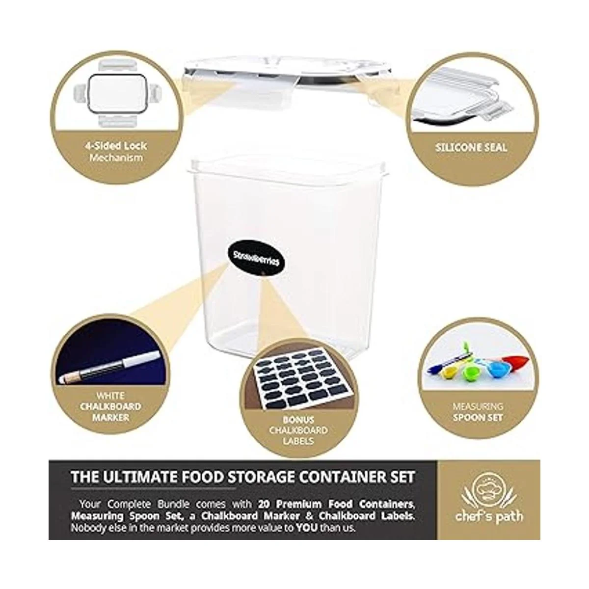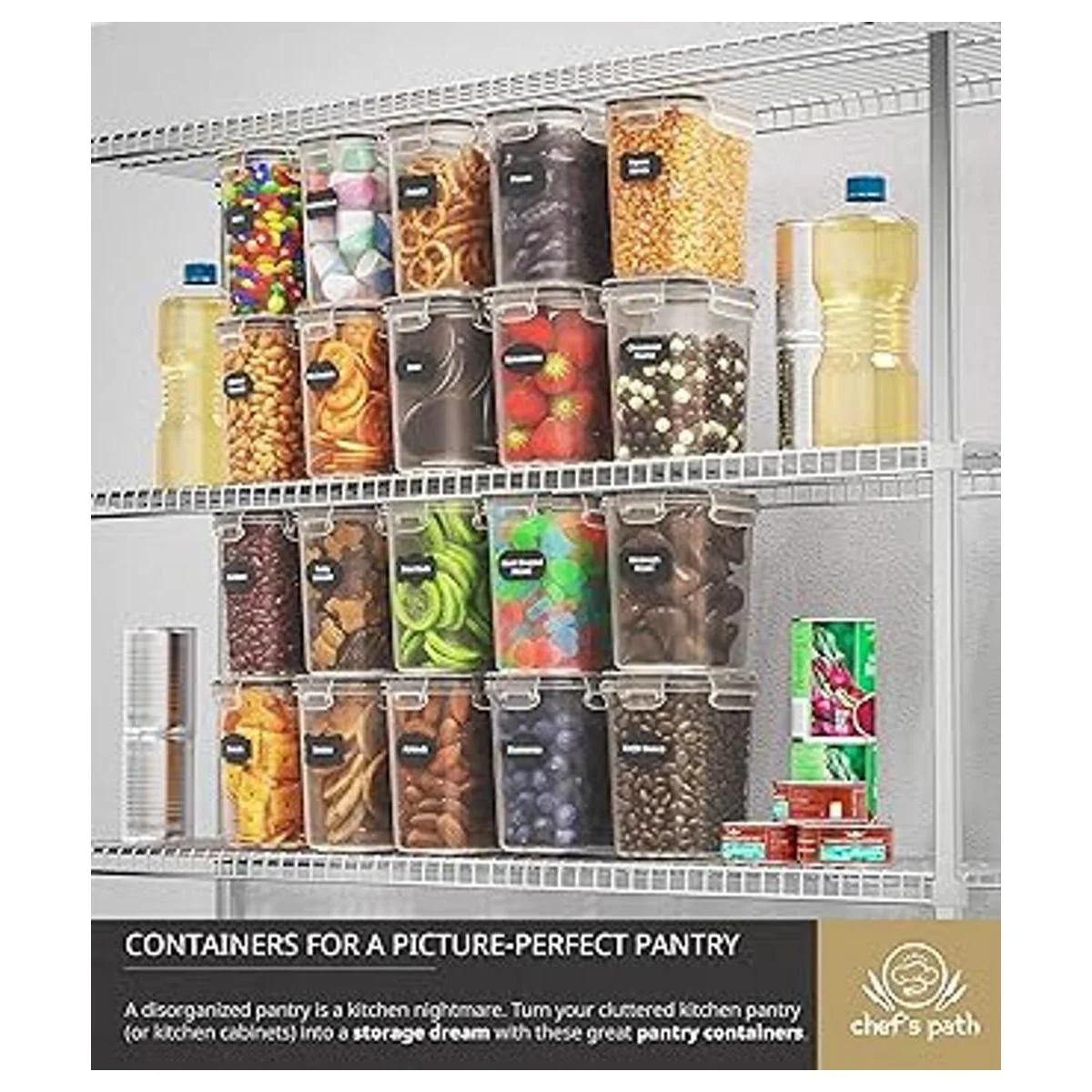 Chefs Path Juego de recipientes herméticos para alimentos 20 unidades, tamaño pequeño, 54 oz, ideales para la organización de cocina y despensa, almacena snacks, harina y azúcar, recipientes de plástico sin BPA, incluye juego de marcador y cuchara