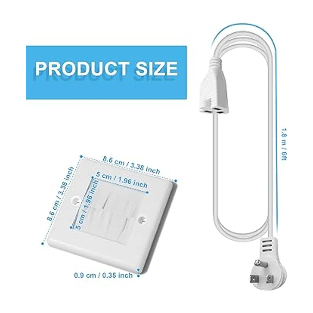 ChengFu Kit de gestión de cables en pared, oculta cables de TV para TV montado en la pared, incluye extensión de cable de TV de 6 pies y 2 paquetes de kit de gestión de cables que oculta los cables de TV detrás de la pared, color blanco paquete de 2