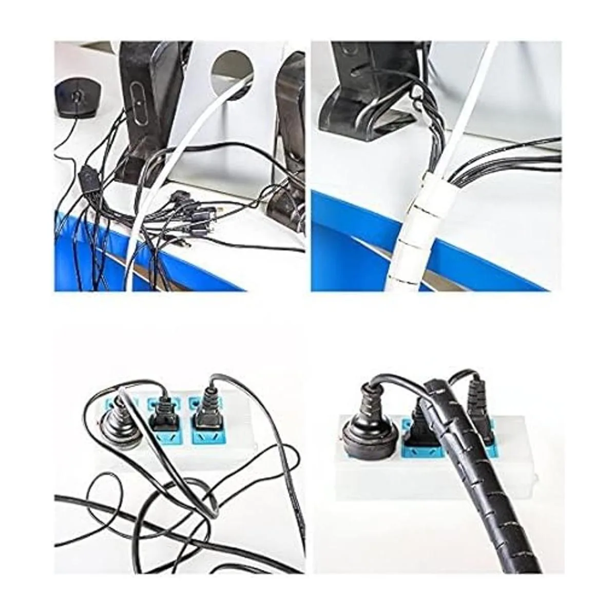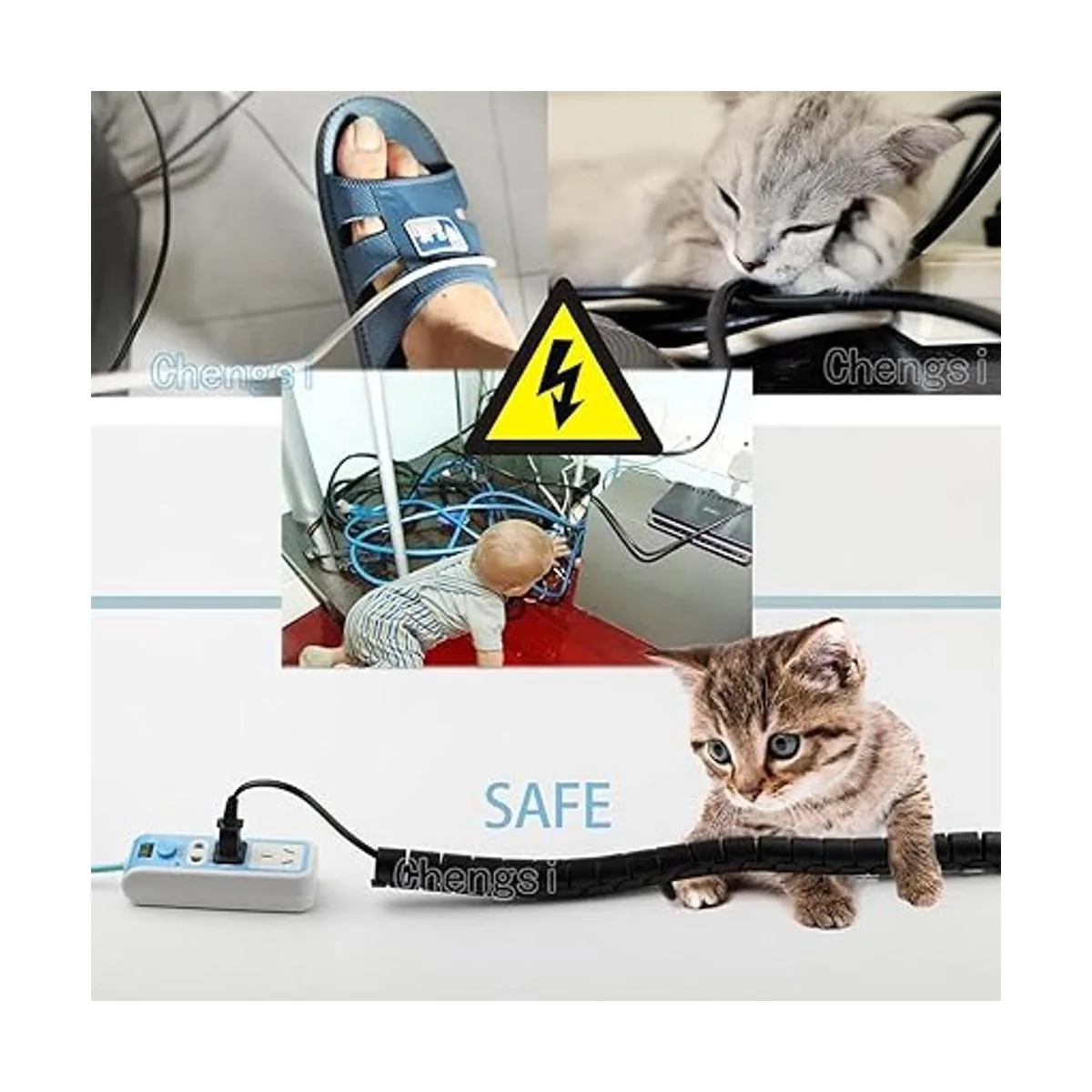Chengsi Organizador de funda de cable de 118 pulgadas, funda de tubo en espiral para gestión de cables para oficina en casa, PC, TV, color negro