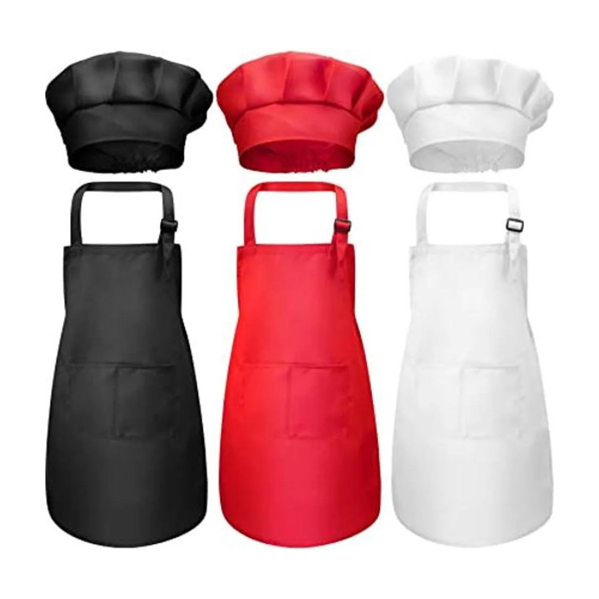Chengu Juego de 6 delantales de sombrero de chef para niños, delantales ajustables para niños, delantales de cocina con 2 bolsillos para cocina, cocina y horneado tamaño grande, color 1