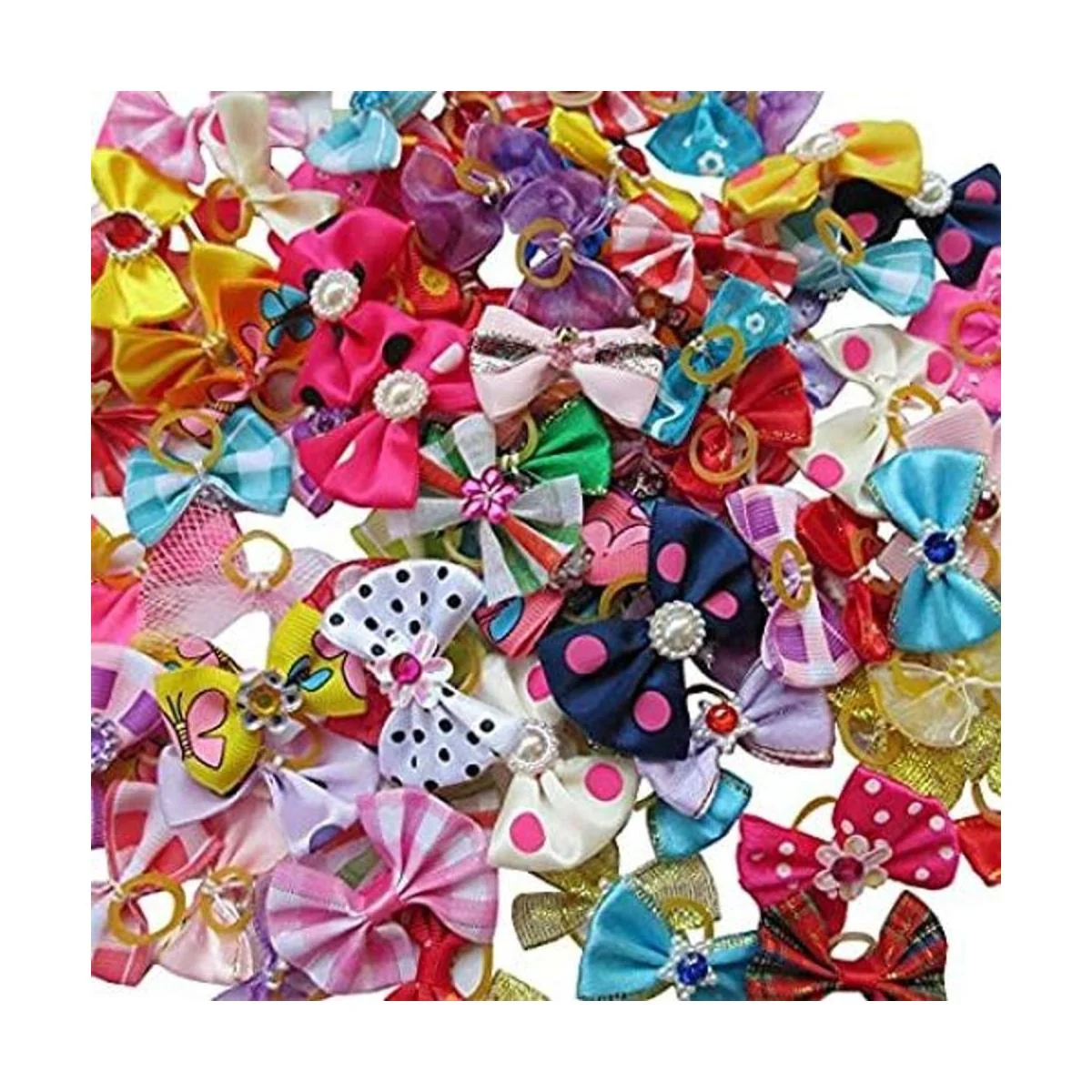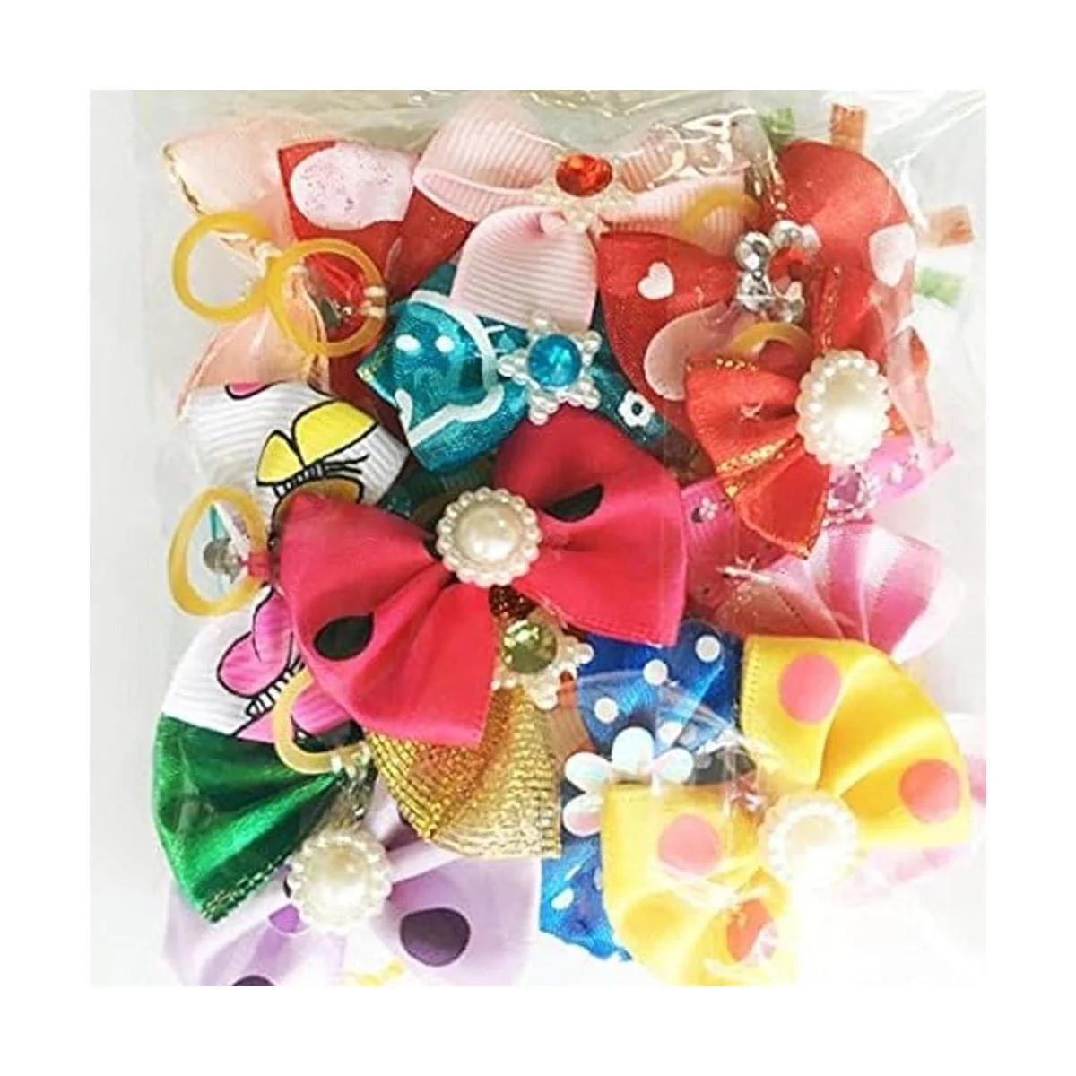 Chenkou Craft 20 lazos para el pelo de perro Yorkie con banda de goma con diamantes de imitación para mascotas y productos de aseo para mascotas, colores variados, patrones de pelo para mascotas y accesorios para perros