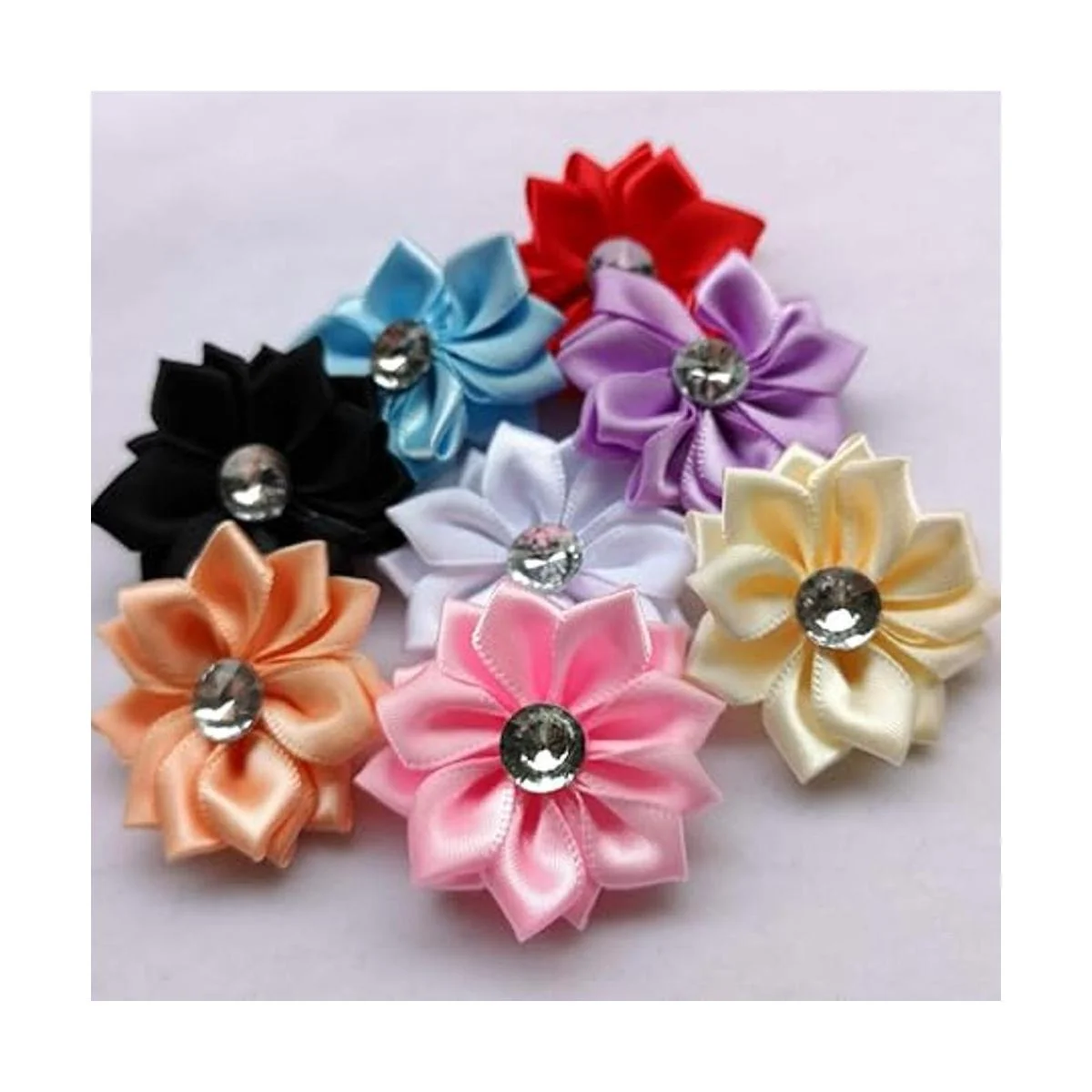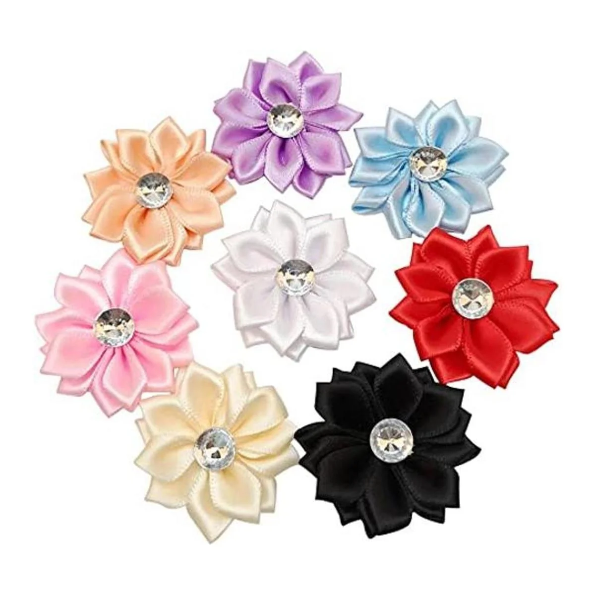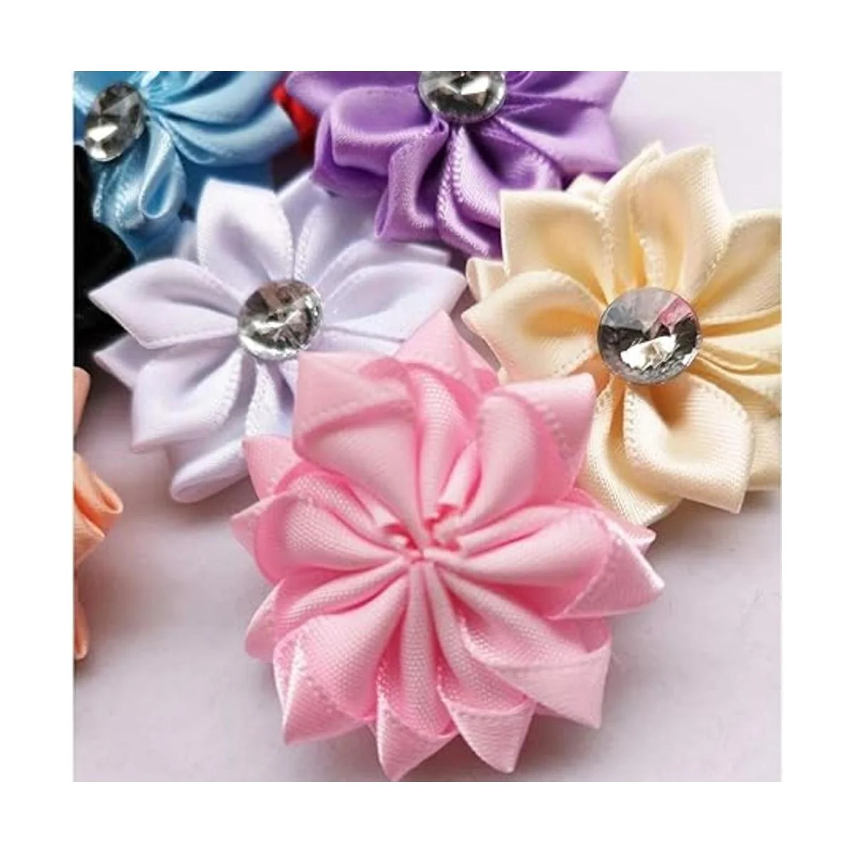 Chenkou Craft 40pcs flor de cinta de raso con perla boda DIY apliques Multi