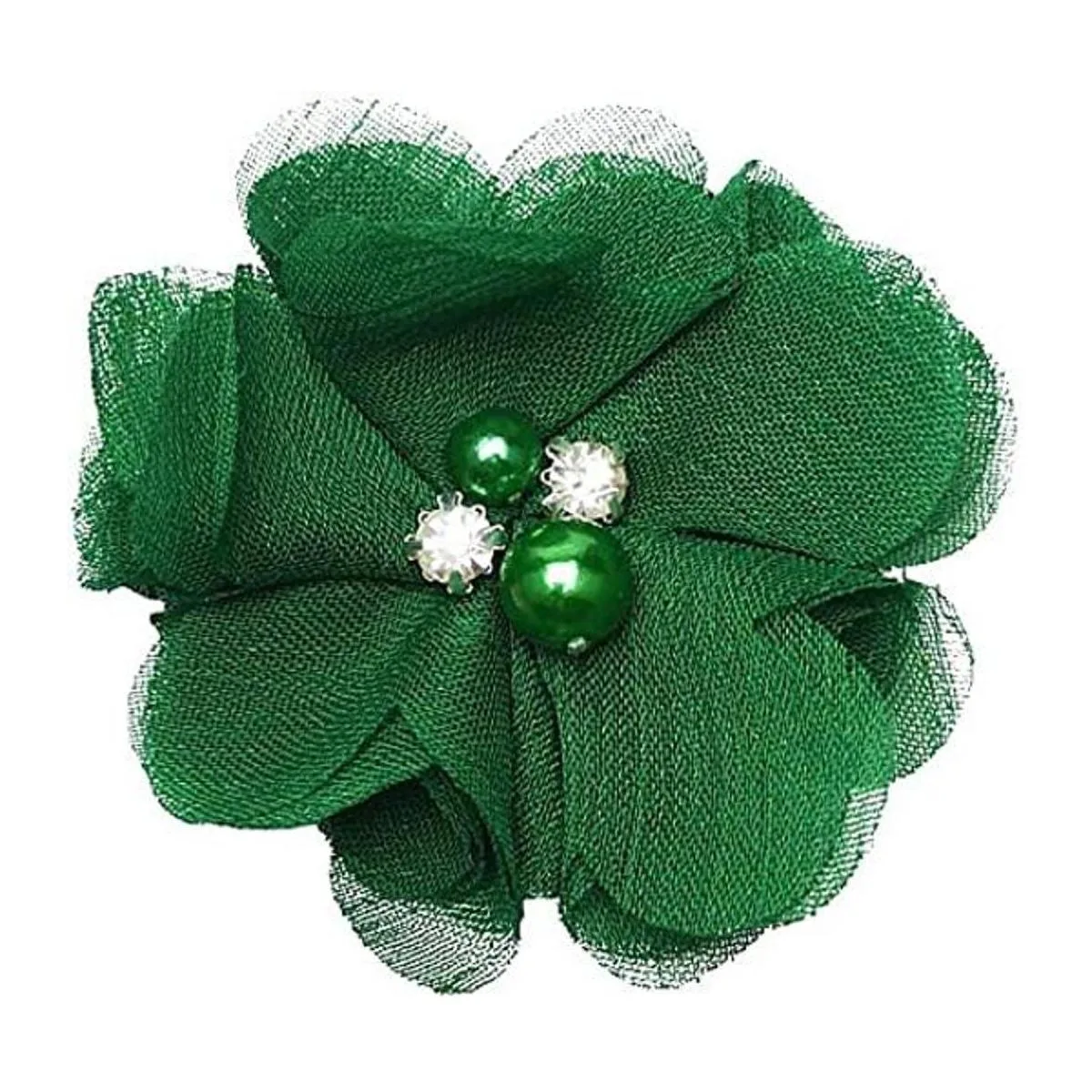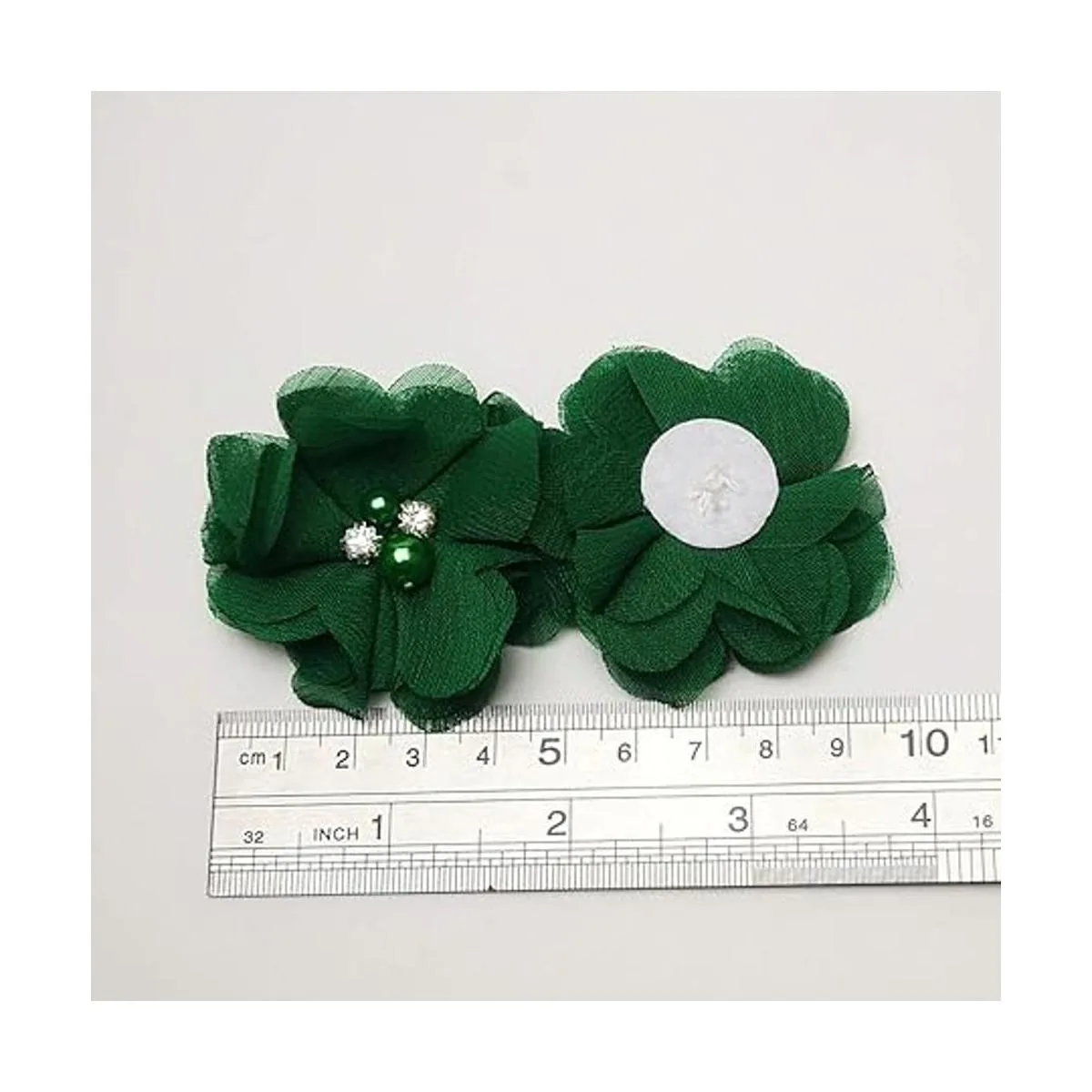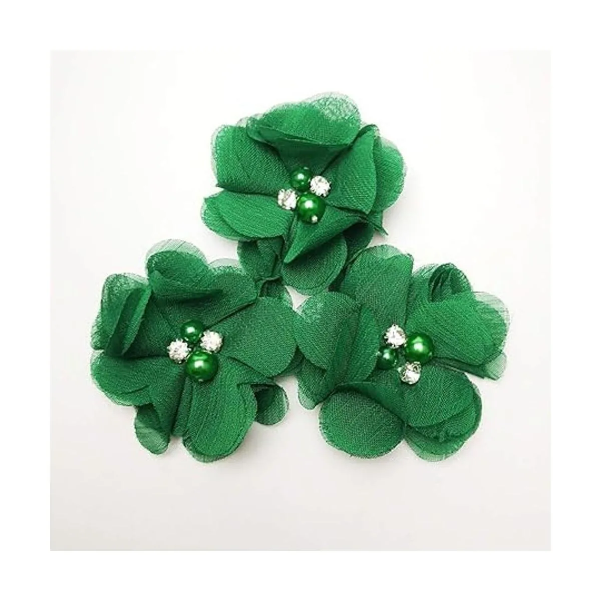 Chenkou Craft Paquete de 12 lazos de cinta de flores de gasa con cuentas de 238 pulgadas 2.362 in, apliques para decoración de boda, lotes a granel verde brillante