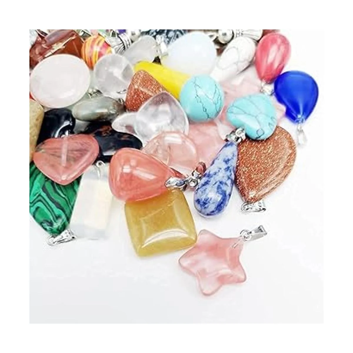 Chenkou Craft Wholesale Lots Mix Random 40pcs Artificial Glass Stone Like Pendants Charms Crystal Stone Beads Bracelet Charm, Diamante de imitación, Diamantes de imitación
