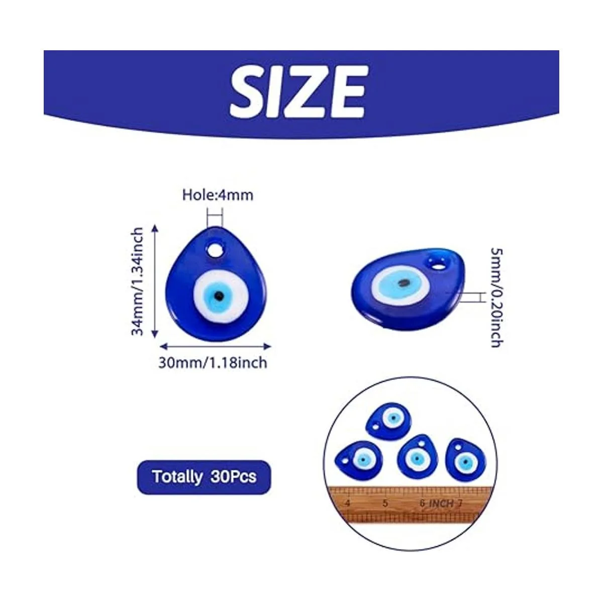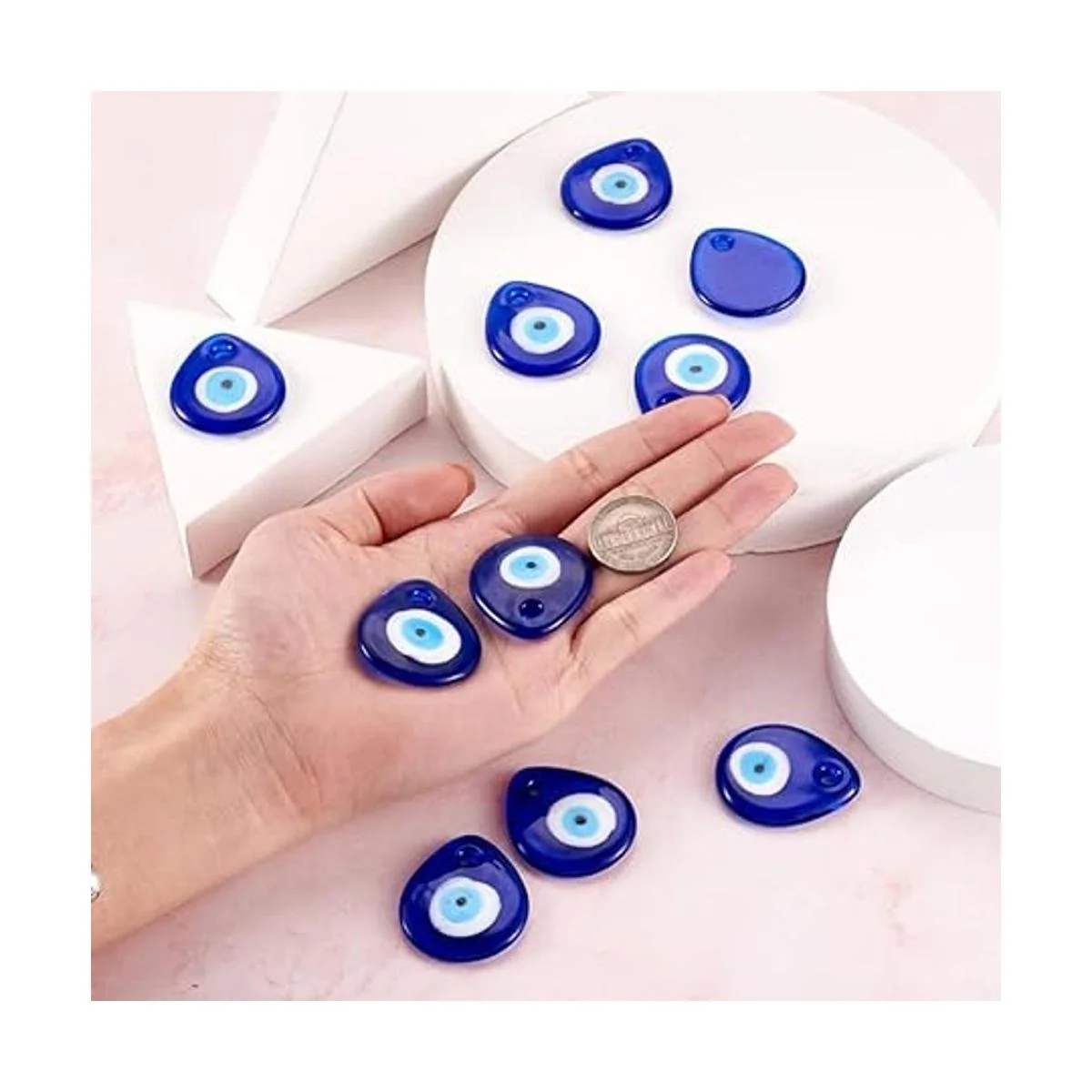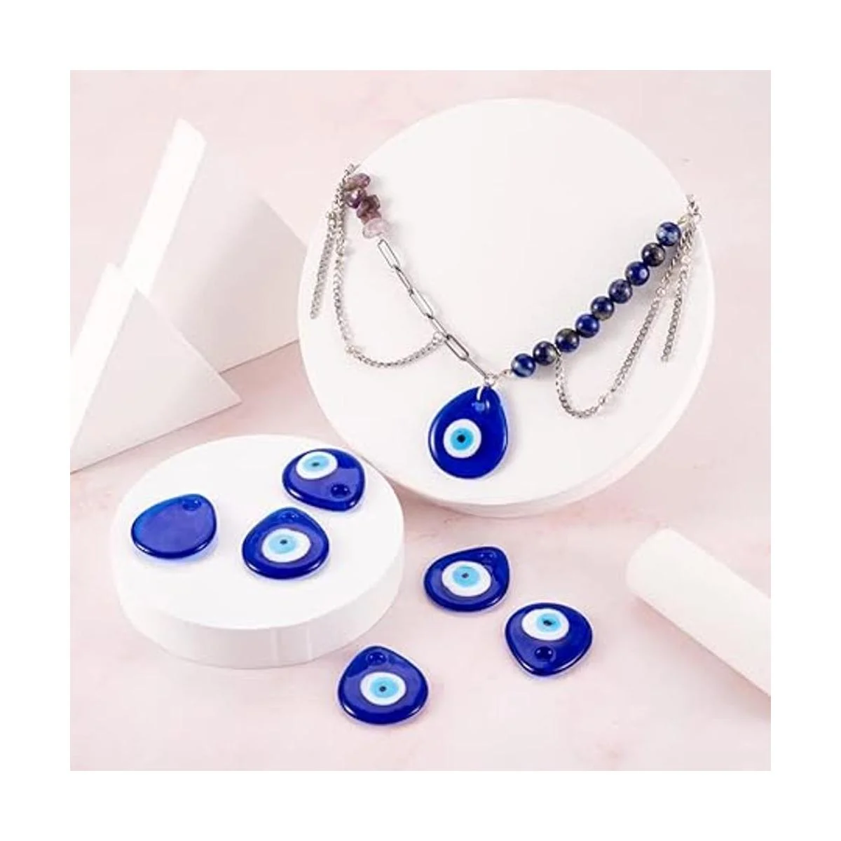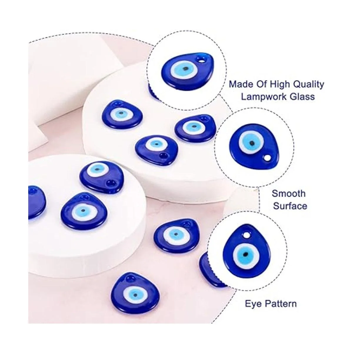 Diseño: estos colgantes tienen forma de lágrima plana con mal de ojo, tienen una superficie lisa, añádelos a tu diseño de joyería para hacer que tu proyecto sea más vívido y encantador. Dijes clásicos y de moda, nunca pasarán de moda.