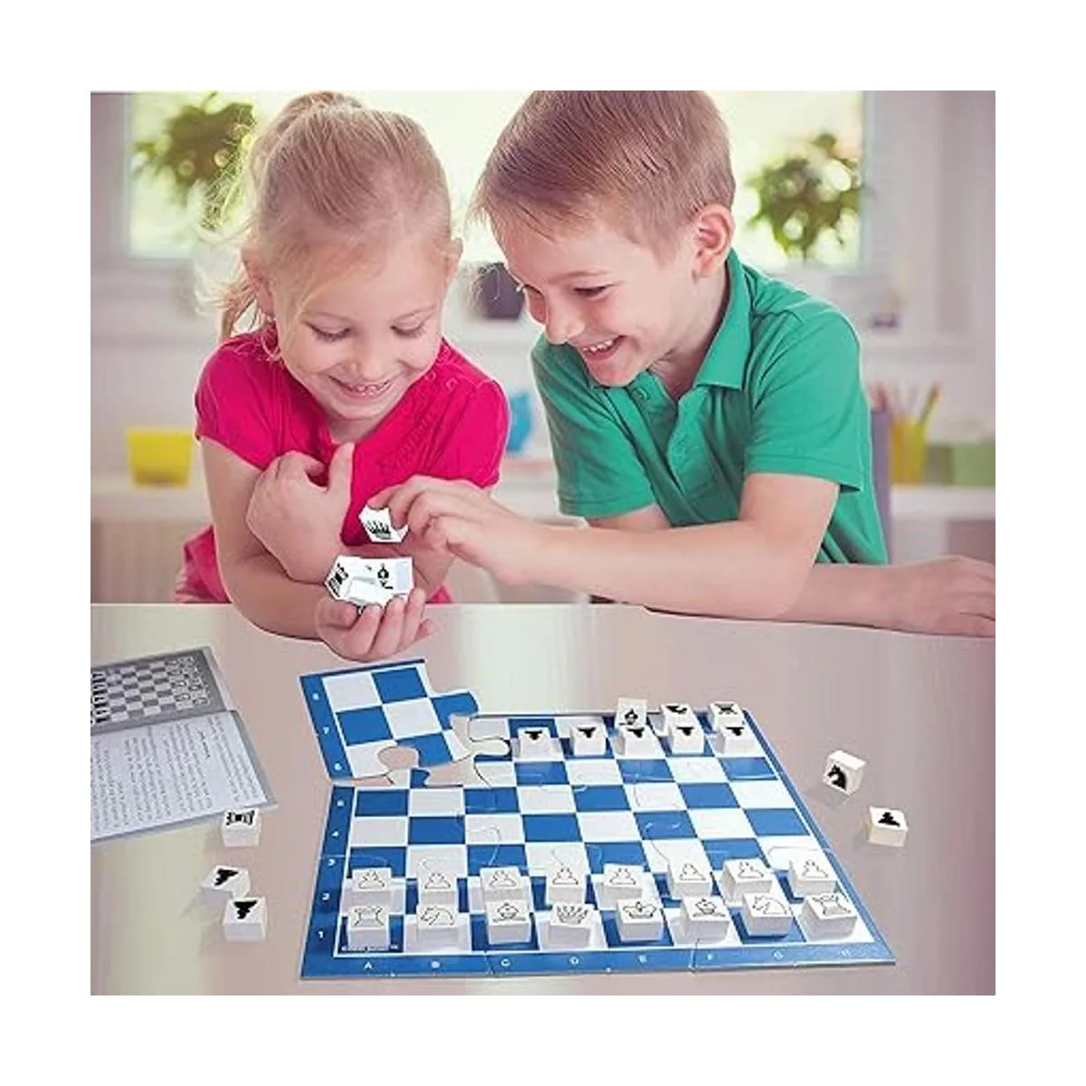 Chess Junior Juego de ajedrez para niños de 4 5 6 7 8 años, juego de mesa, ganador del premio de juguete infantil del cerebro, azul