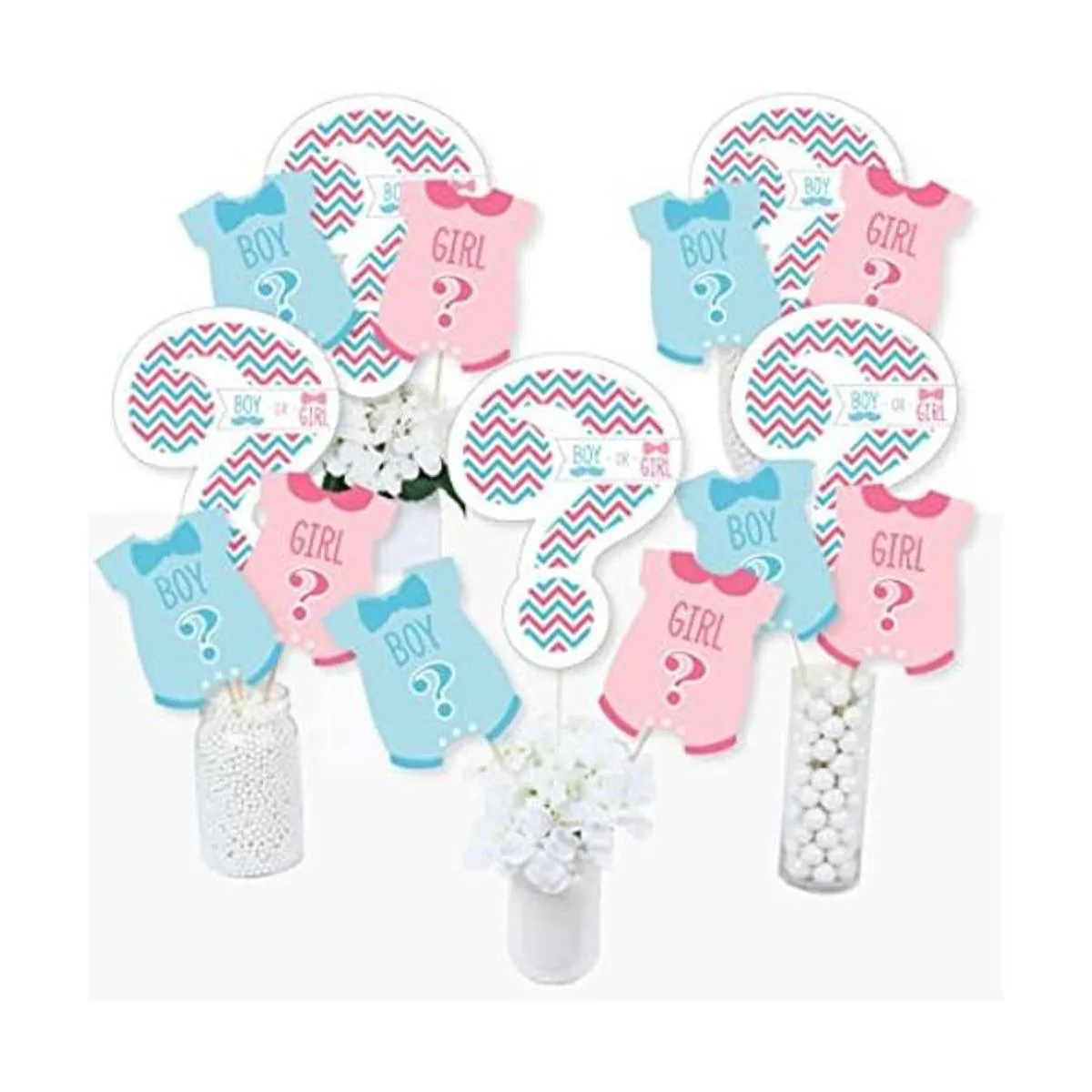 Chevron Gender Reveal Varillas de centro de mesa para fiestas con diseño de género Juego de 15