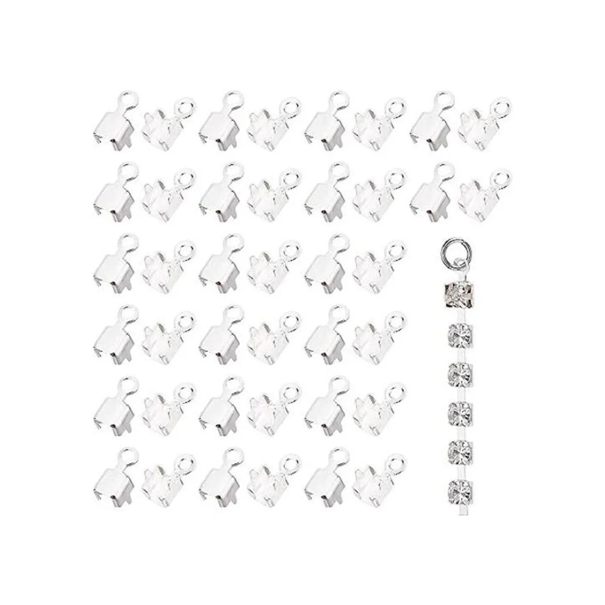 CHGCRAFT 200 piezas de conectores de cadena de latón con extremos de cadena de cristal de estrás para cadena de copa, chapado en plata de ley con abalorios, conectores para joyería o decoración, agujero de aproximadamente 0.059 in