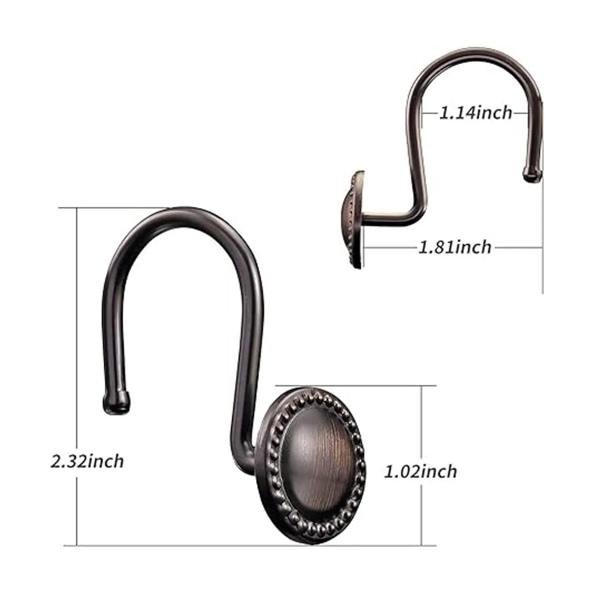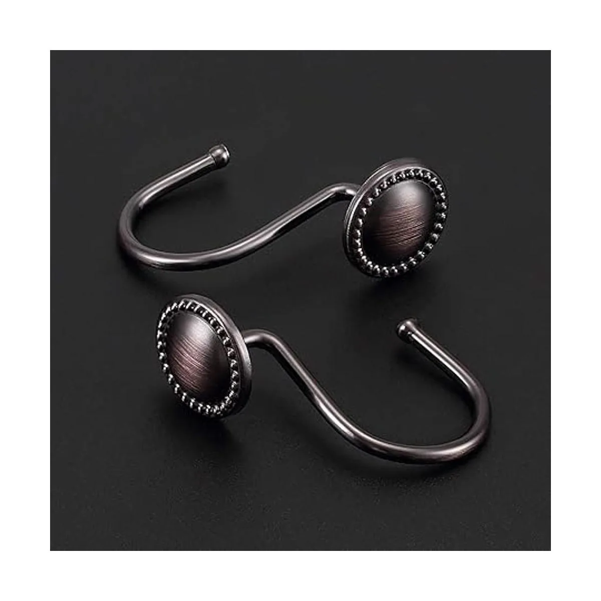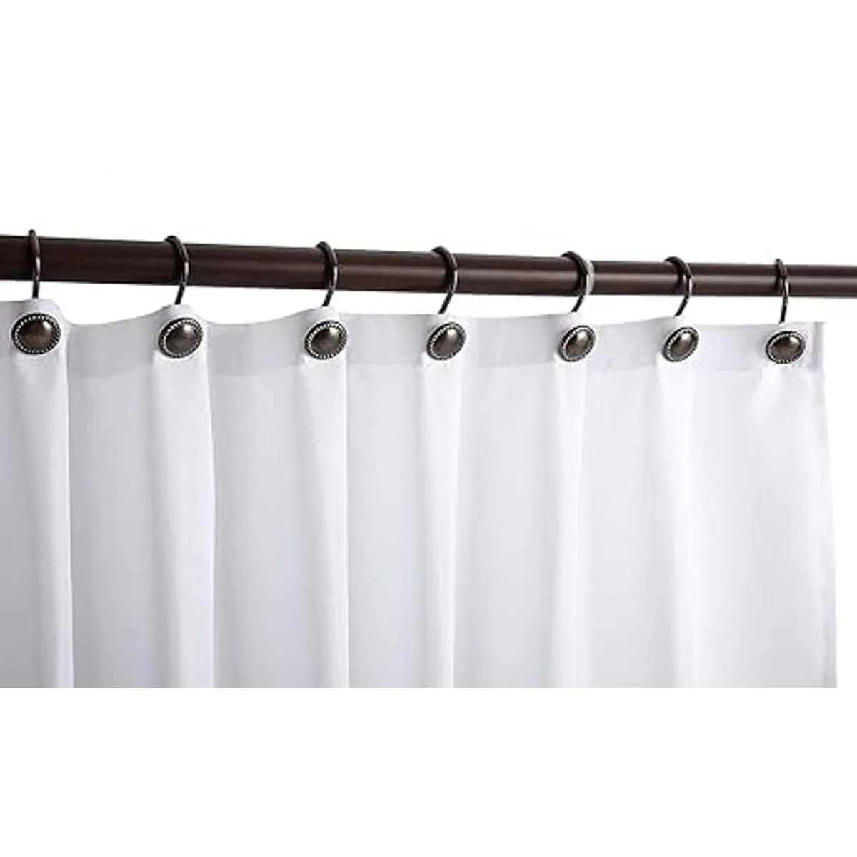 Ganchos decorativos para cortina de ducha con aceite, ganchos de ducha de metal antioxidante, estructura soldada de metal muy resistente, no se agrietan ni se desmontan fácilmente cuando cuelgas incluso cortinas de ducha pesadas, pueden colgar tanto la cortina de ducha como el forro de ducha a la vez