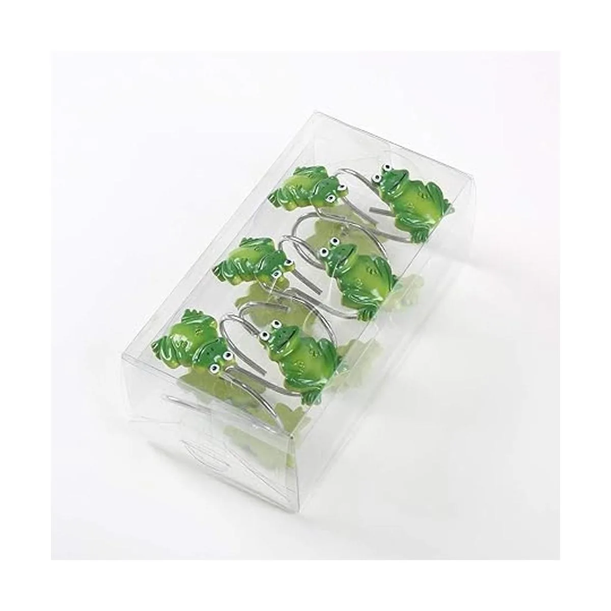 CHICTIE Ganchos para cortina de ducha con rana, juego de 12 ganchos decorativos verdes, anillos de ducha de acero inoxidable para baño