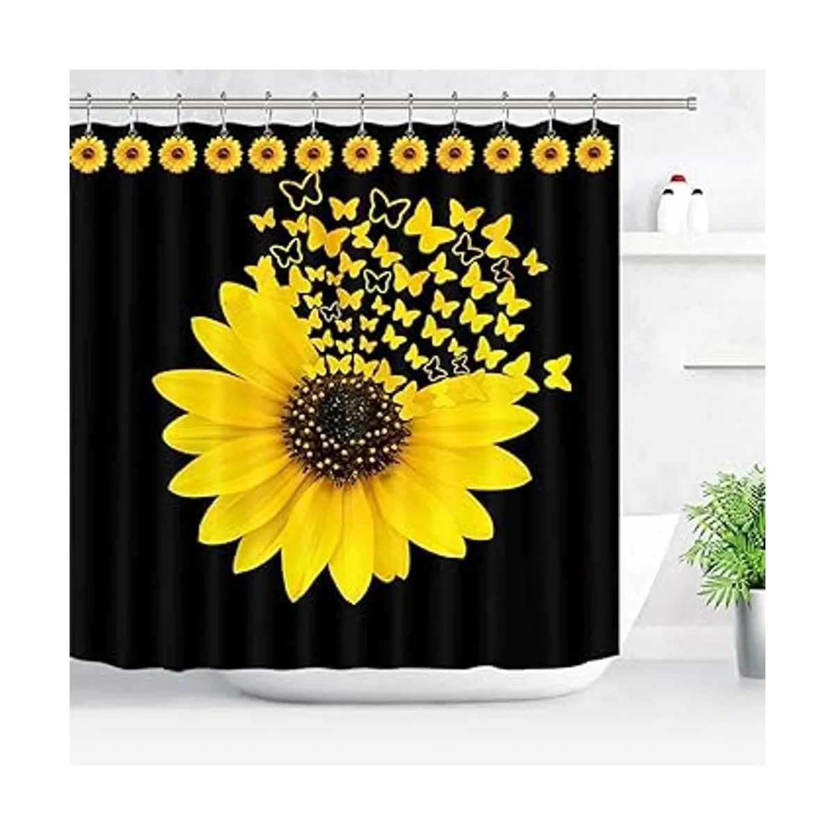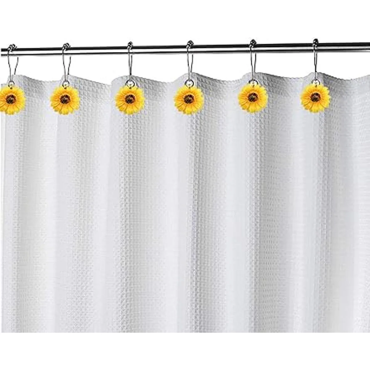 Juego de 12 anillos de cortina de ducha de girasol, hermosos ganchos clásicos de bola de rodillo y 12 colgantes de margarita de heliantho, añadiendo un aspecto de estilo bosque muy elegante a cualquier baño.
