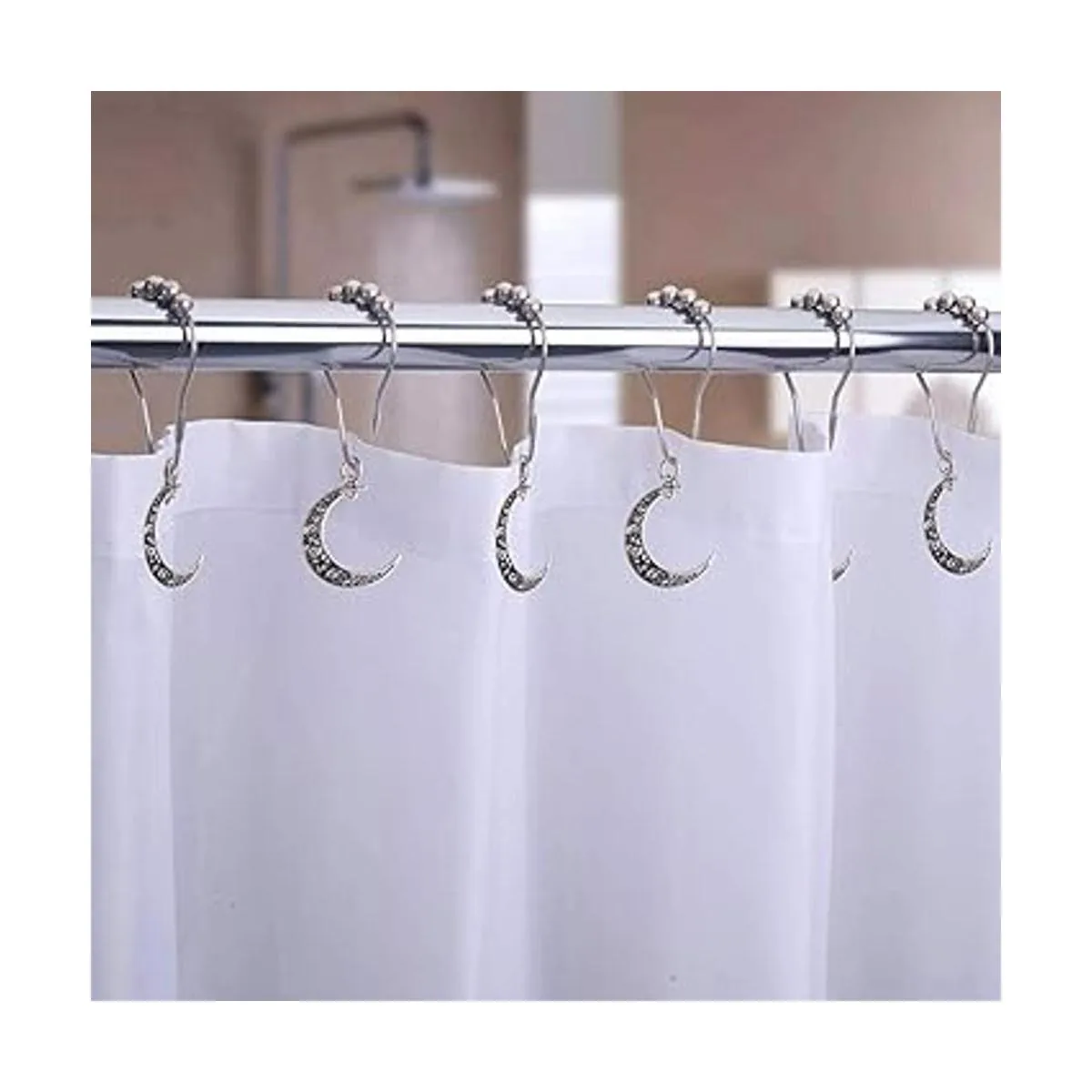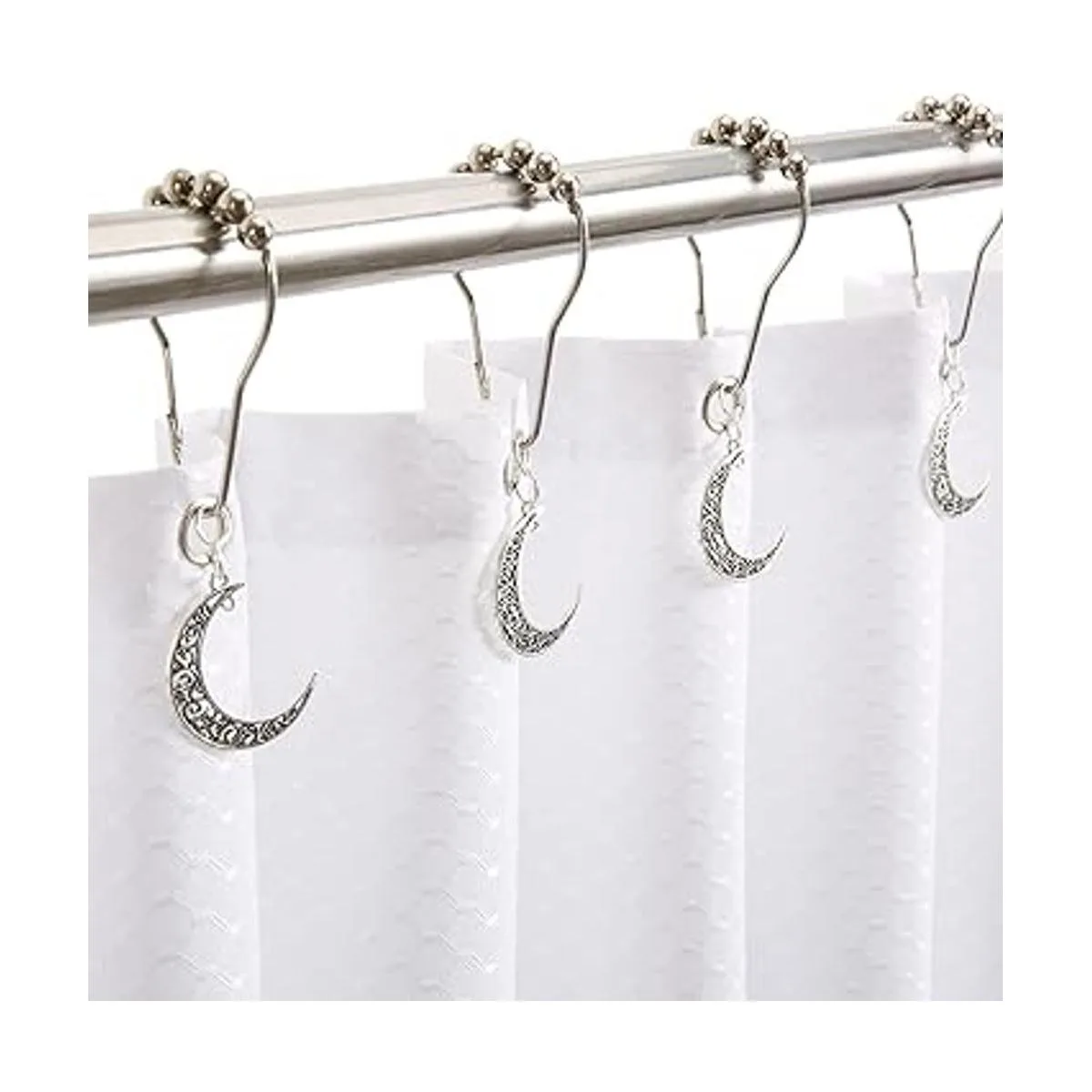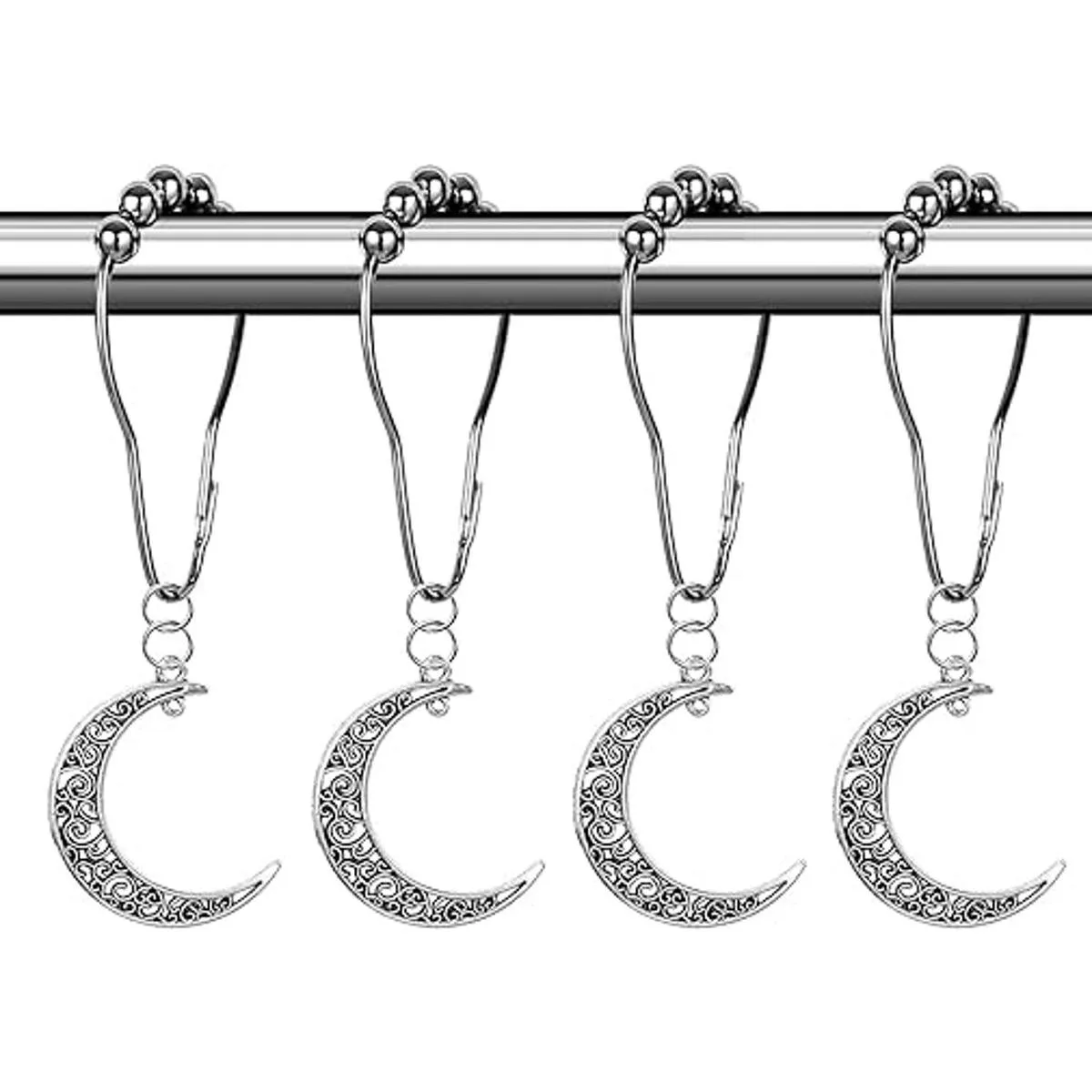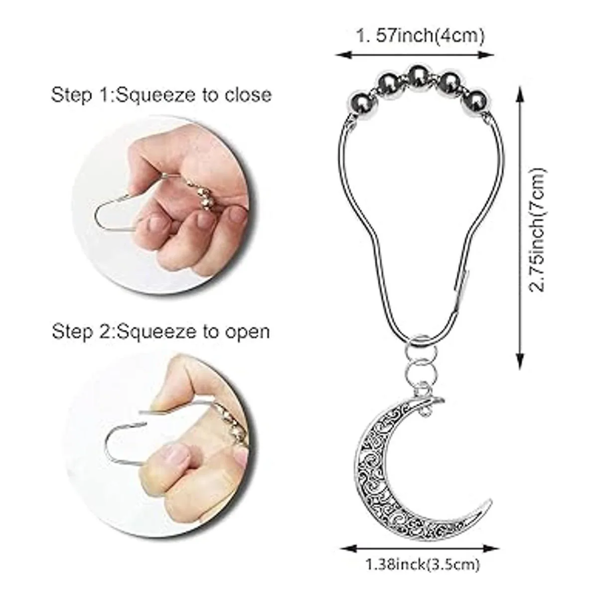 Ganchos de cortina de ducha de metal de alta calidad: ganchos decorativos de luna plateada, fáciles de enganchar y colgar, y permiten que la cortina se abra y cierre libremente sin problemas