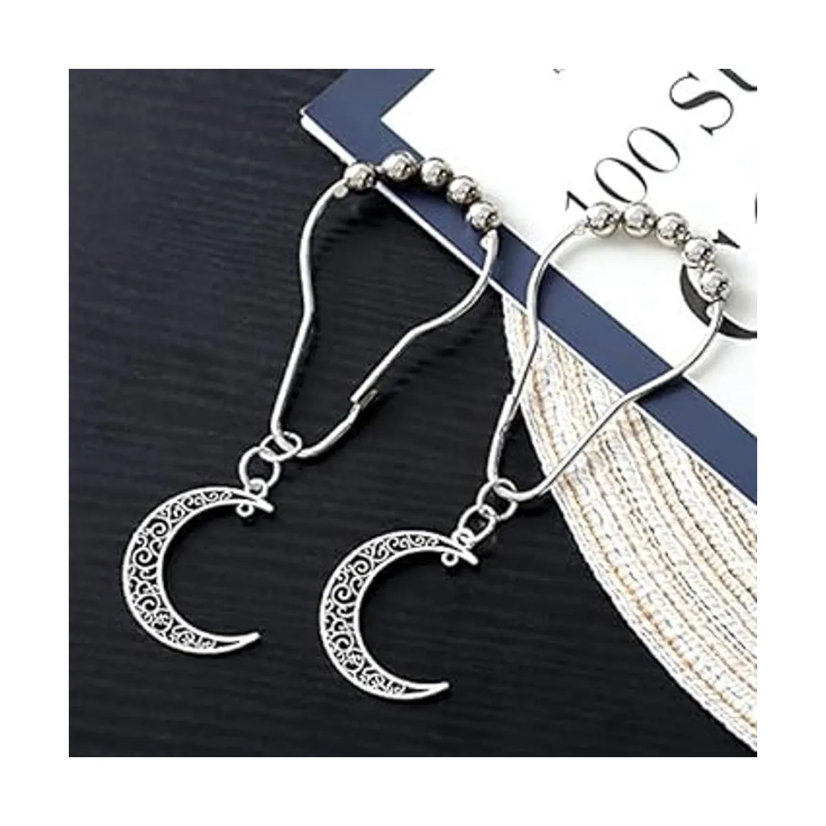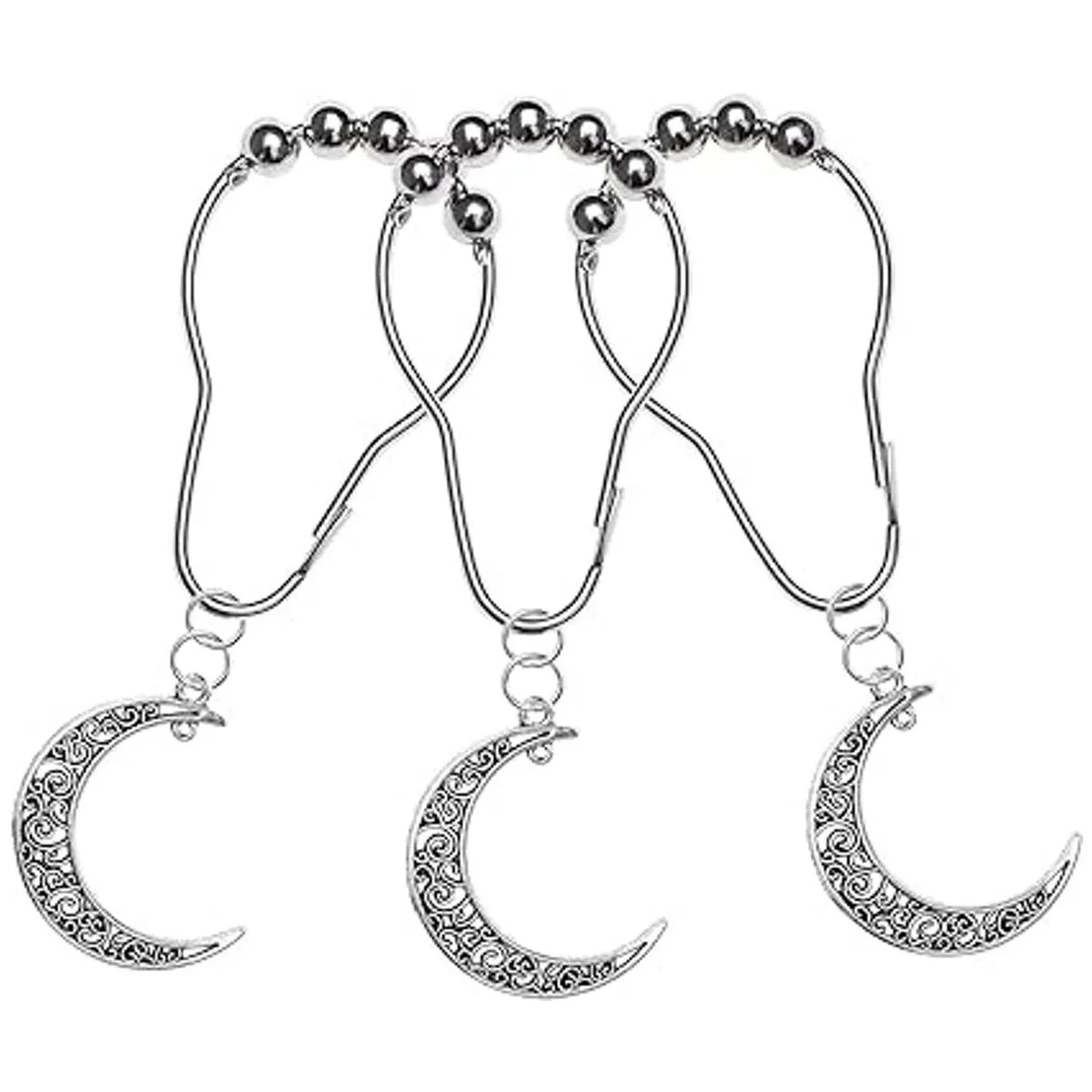 CHICTIE Ganchos para cortina de ducha, ganchos decorativos para cortina de ducha de luna plateada, 12 piezas de metal cromado pulido a prueba de óxido, colgantes decorativos para baño