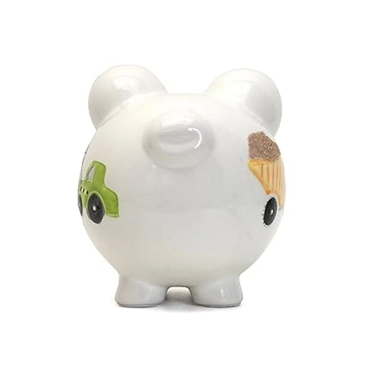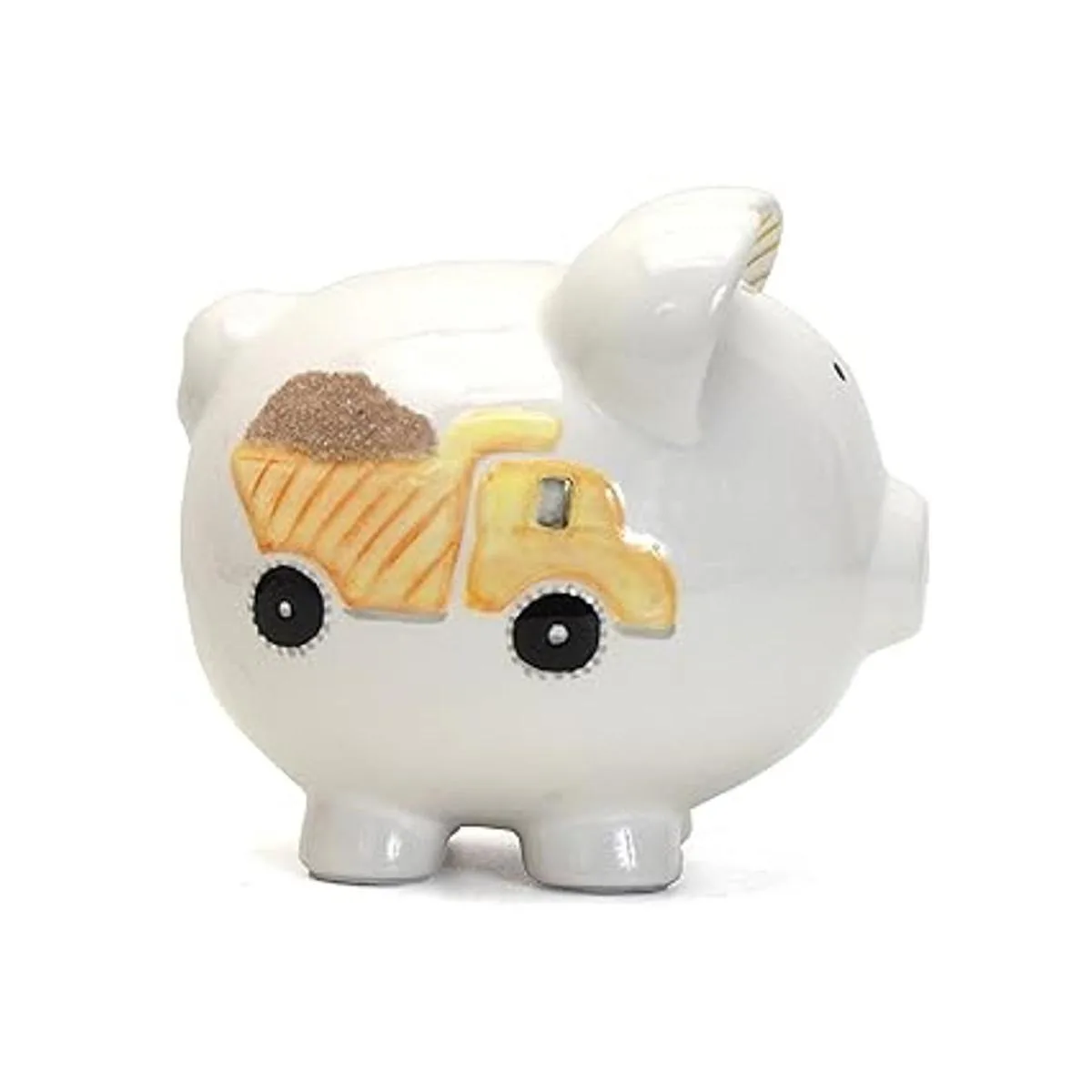 Child to Cherish Alcancía de cerámica para niños, camión volquete excavador