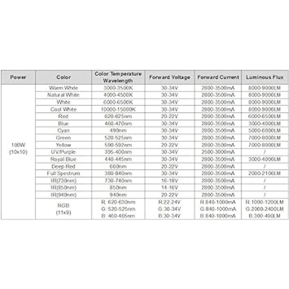 Chip LED de alta potencia de 100W., 100.00watts, 34.0 volts