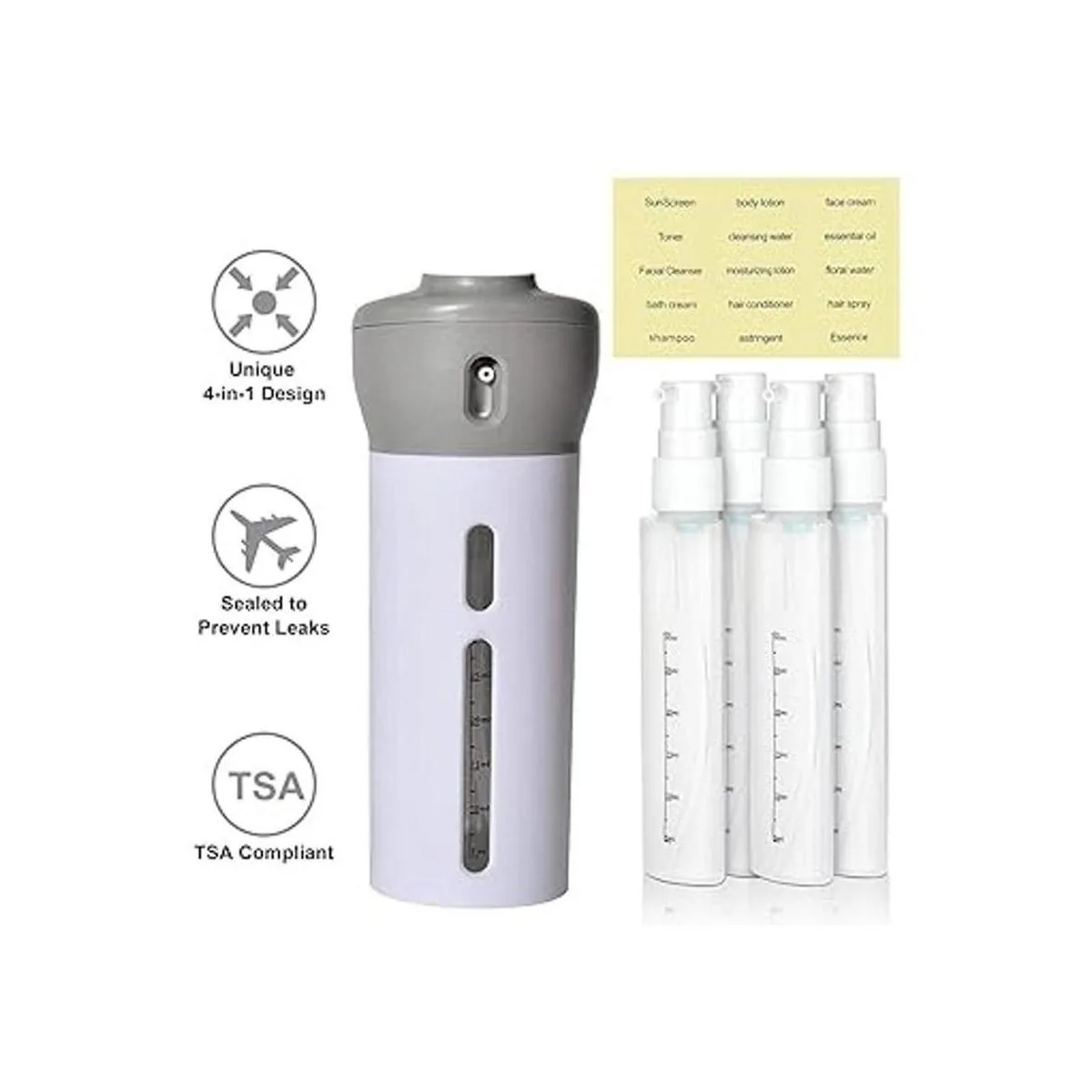 Diseño único 4 en 1: Combina 4 botellas de viaje rellenables en un envase. Solo tienes que girar la parte superior y tener acceso instantáneo al champú, acondicionador, loción, gel corporal, serums, desinfectantes de manos, etc.