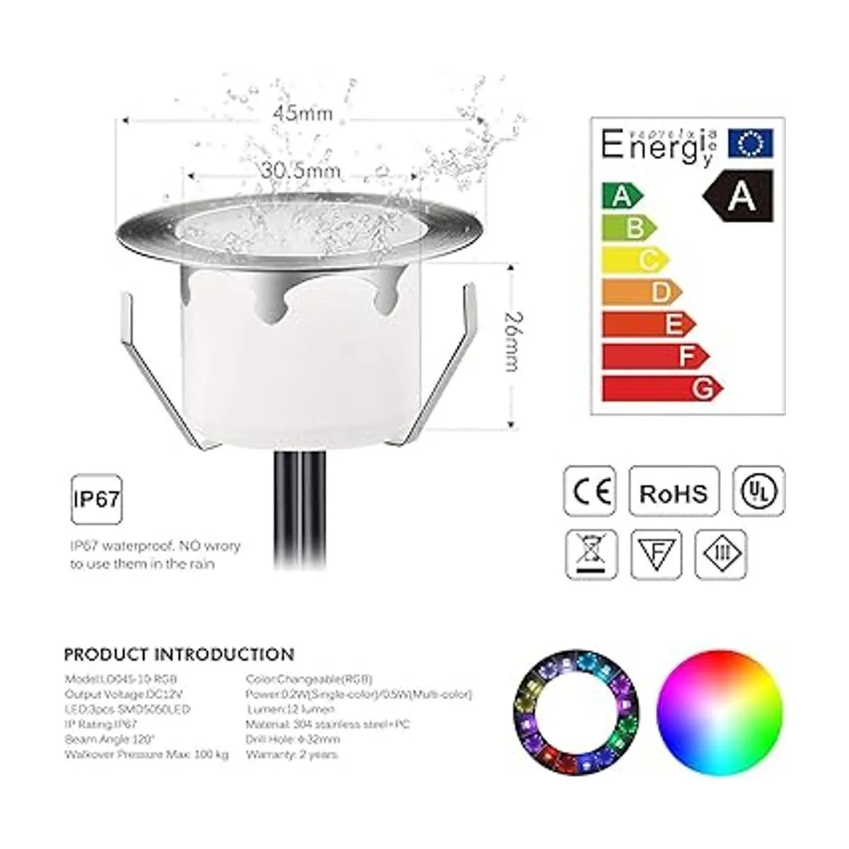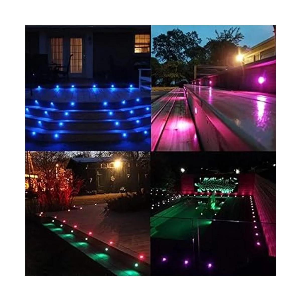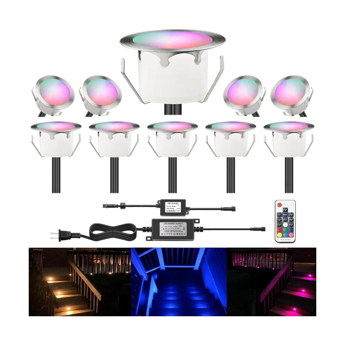 CHNXU Kit de luces LED que cambian de color con transformador y control remoto, paquete de 10 luces IP67 impermeables 1.77 pulgadas, 12 V, bajo voltaje, RGB empotradas para interiores y exteriores, cubierta para patio, camino, luces de paisaje