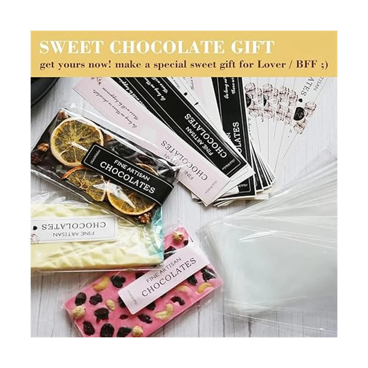 Chocolate Bar Molds 100PCS Set Silicone Candy Mold With Smoother Baking Scraper, Wrappers and Packaging Stickers, DIY Food Kits Ideal Gift for Snap Chocolate Wax Lover Boyfriend Mom Valentines Day