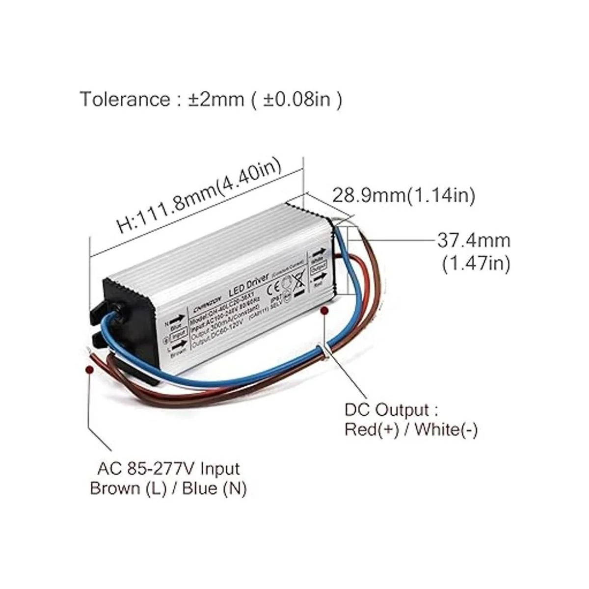 Input: AC100240V 50/60Hz Output: Current 300mA Constant ; Voltage 60120V ; Power 20/24/30/36 W Watt